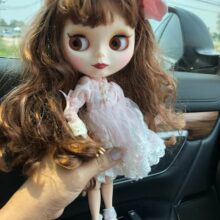 I’m pleased with the whole experience from the website navigation to the delivery process. The doll arrived intact in a sturdy box. I also got a free coaster with a logo from This Is Blythe. The hair is just gorgeous. My doll has a matte face and a strong body. The clothes and shoes are very beautiful. The eye mechanism works perfectly. Thanks for the gift.