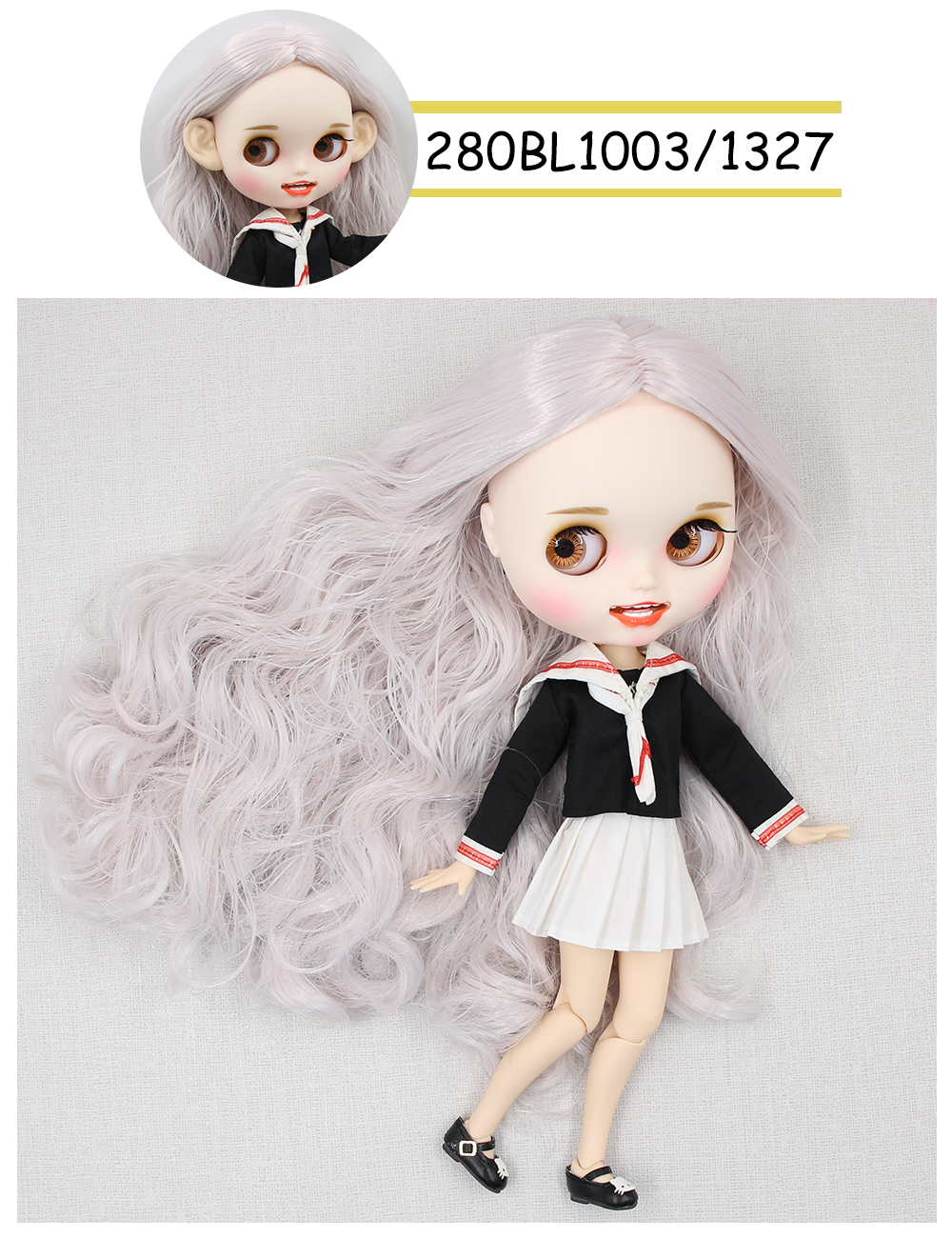 Aria – Premium Custom Blythe Doll with Smiling Face Grey Hair Custom Blythe Doll Matte Face Custom Blythe Doll White Skin Custom Blythe Doll