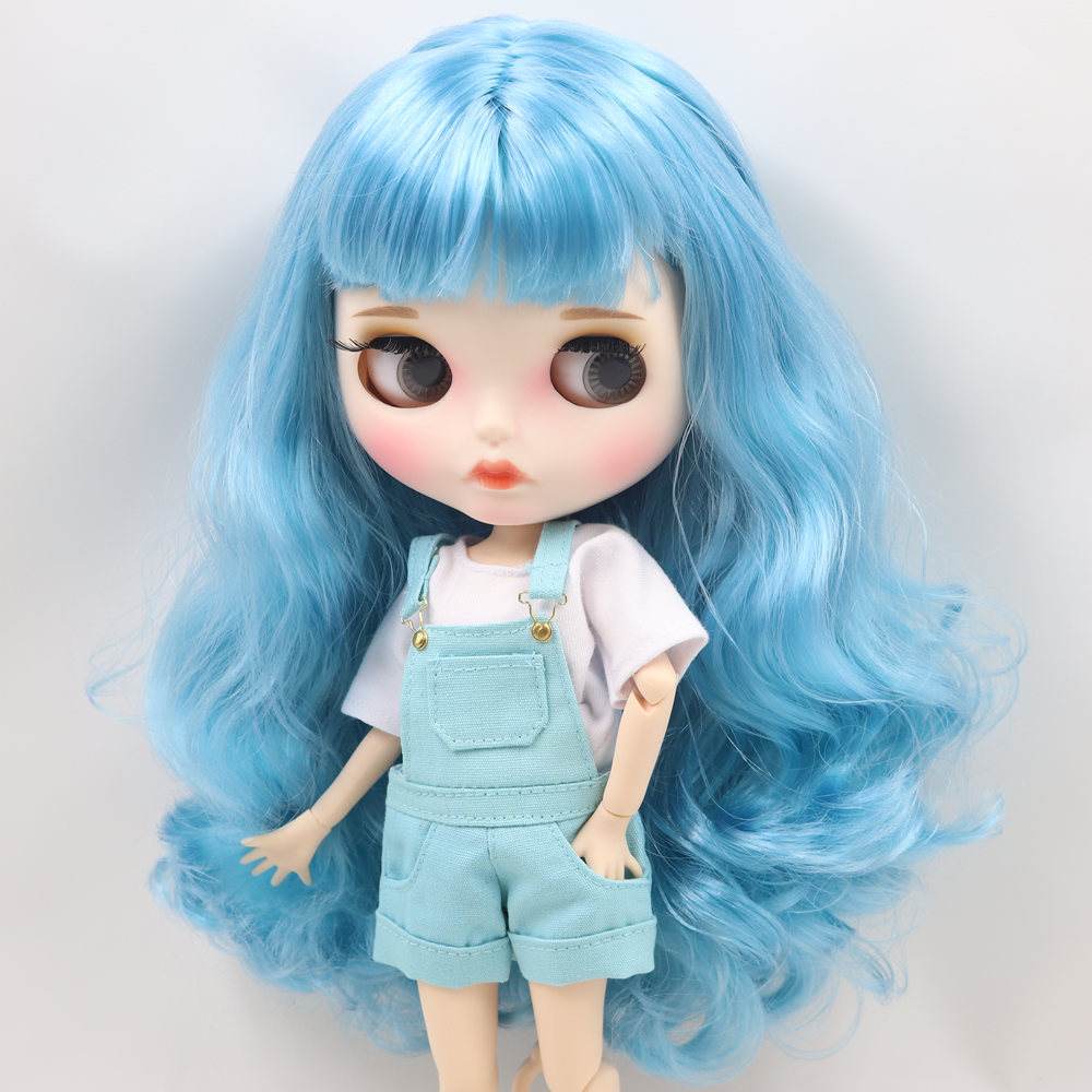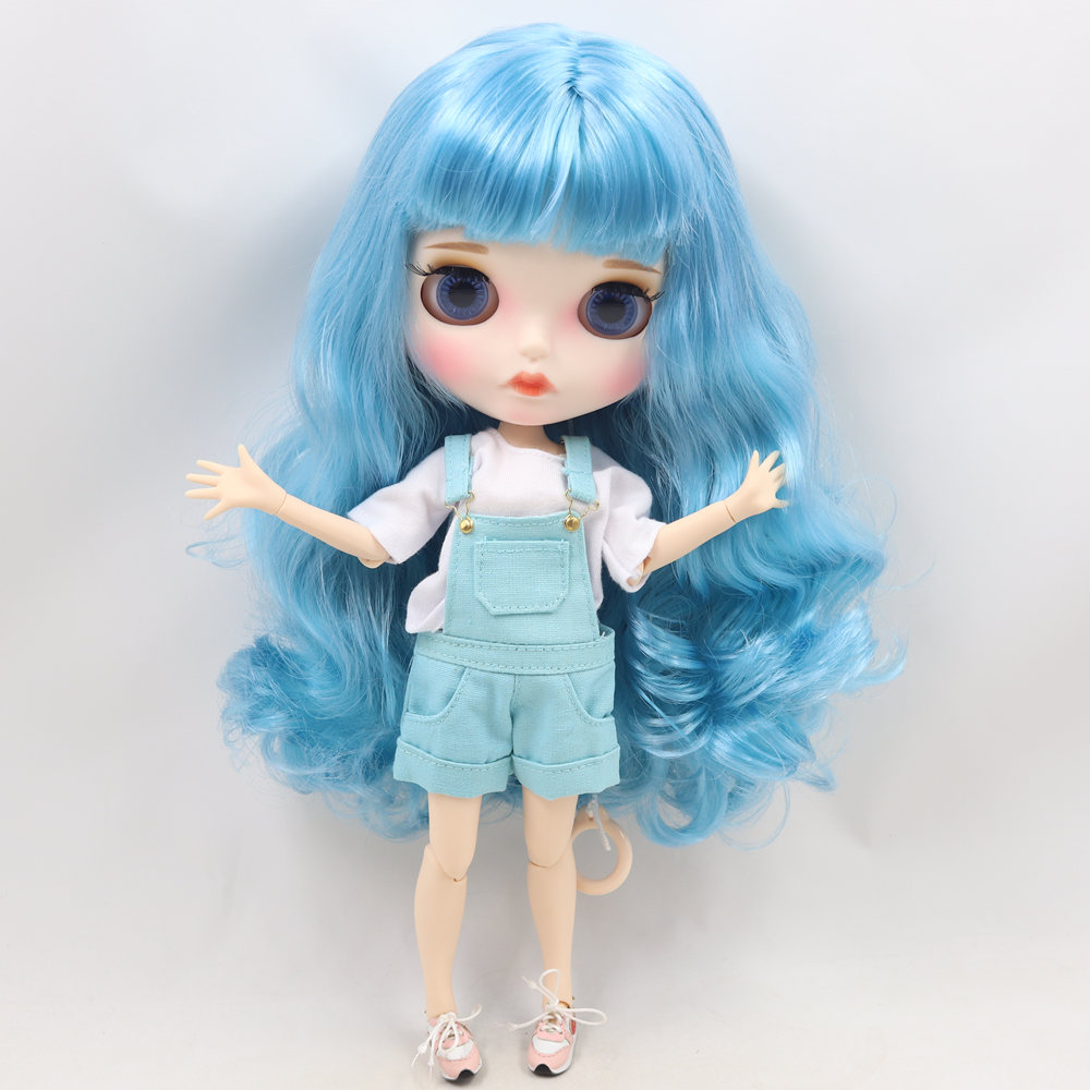 Austyn – Premium Custom Blythe Doll with Pouty Face Blue Hair Custom Blythe Doll Matte Face Custom Blythe Doll White Skin Custom Blythe Doll