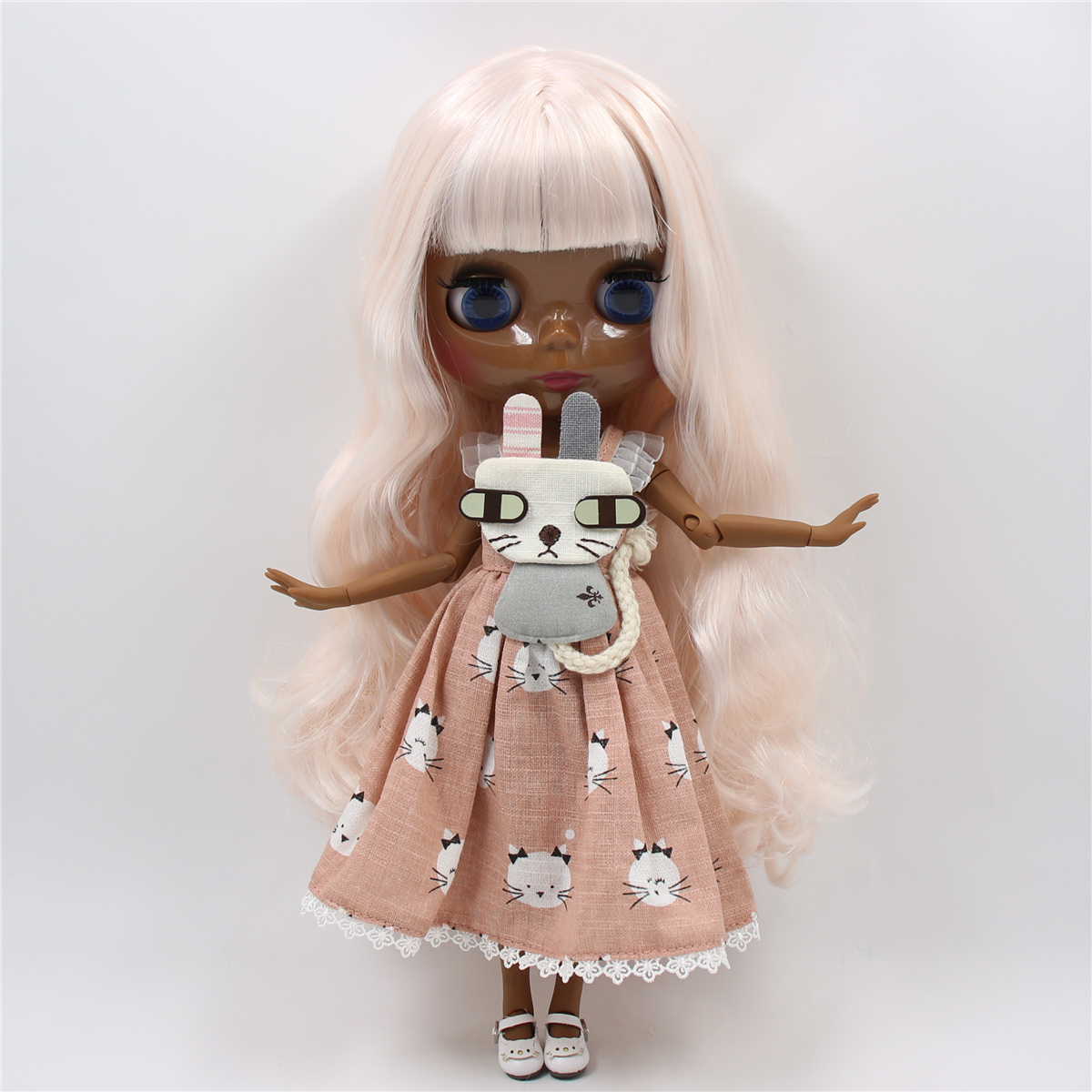 Belen – Premium Custom Blythe Doll with Cute Face Black Skin Custom Blythe Doll Pink Hair Custom Blythe Doll Shiny Face Custom Blythe Doll