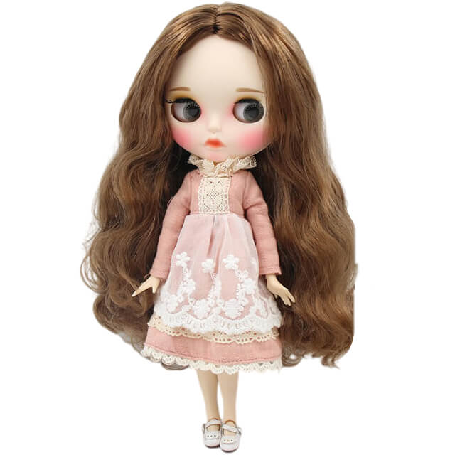 I’m pleased with the whole experience from the website navigation to the delivery process. The doll arrived intact in a sturdy box. I also got a free coaster with a logo from This Is Blythe. The hair is just gorgeous. My doll has a matte face and a strong body. The clothes and shoes are very beautiful. The eye mechanism works perfectly. Thanks for the gift.