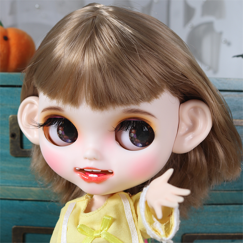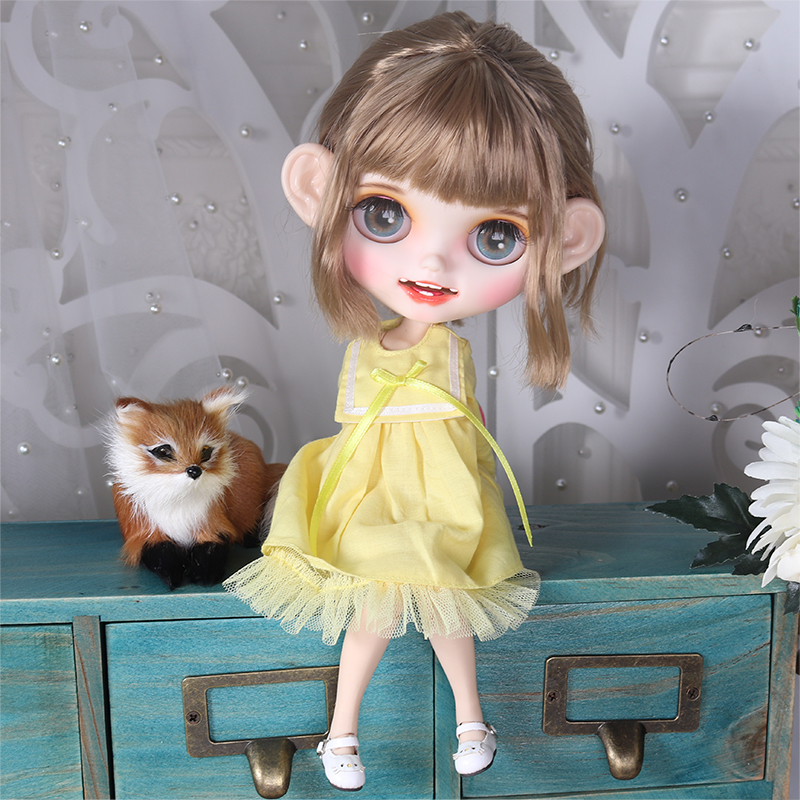 Looking for your own wide-eyed darling? Here is your top-quality handmade custom Neo Blythe Doll for sale. Clover – Premium Custom Blythe Doll with Smiling Face is what you have been looking for, for a long time. Adopt your dream custom handmade Neo Blythe doll now – fully assembled and ready out of the box! All parts are brand new with quality craftsmanship, improved silky soft hair, top quality sturdy body, new Blythe face, 4 eye colors, and additional free items with purchase. Ideal for Blythe doll customizers, collectors and gift purposes. Buy a gift of Blythe now!