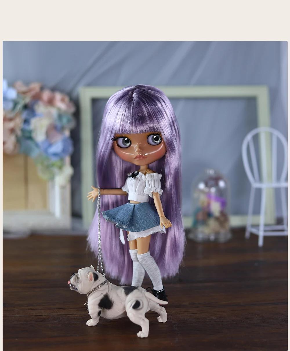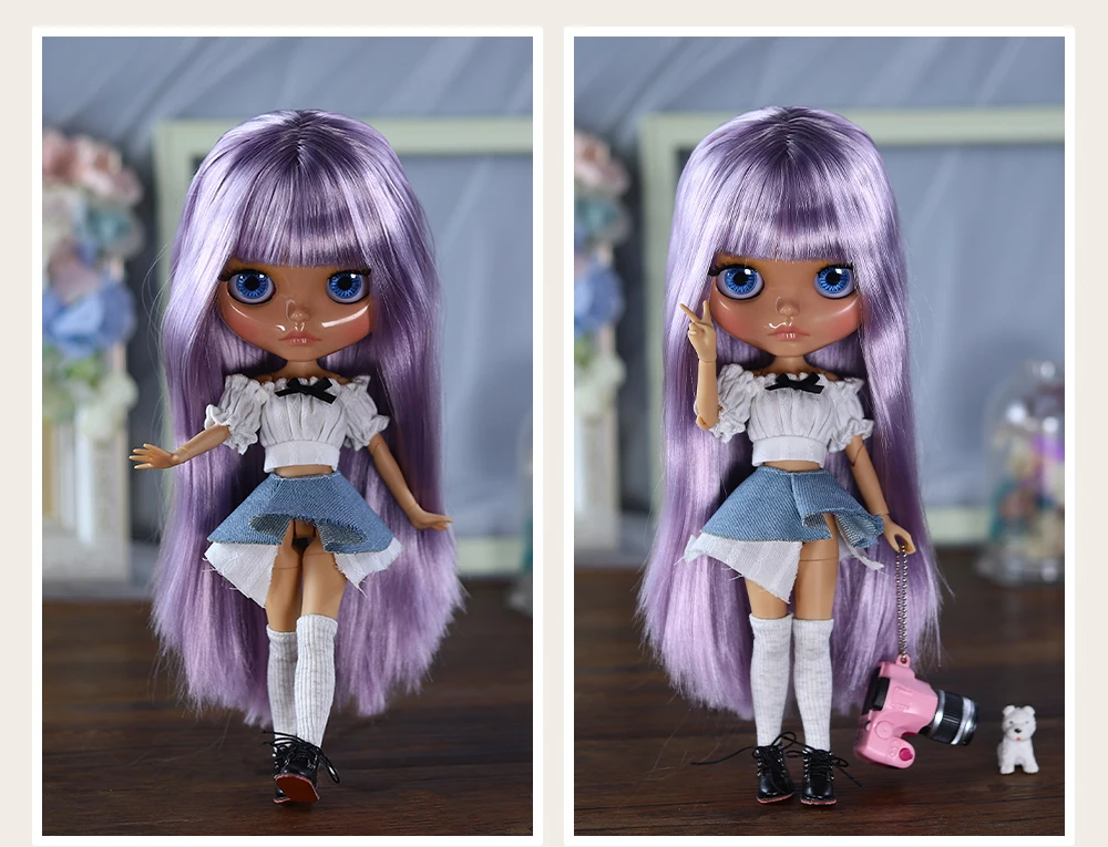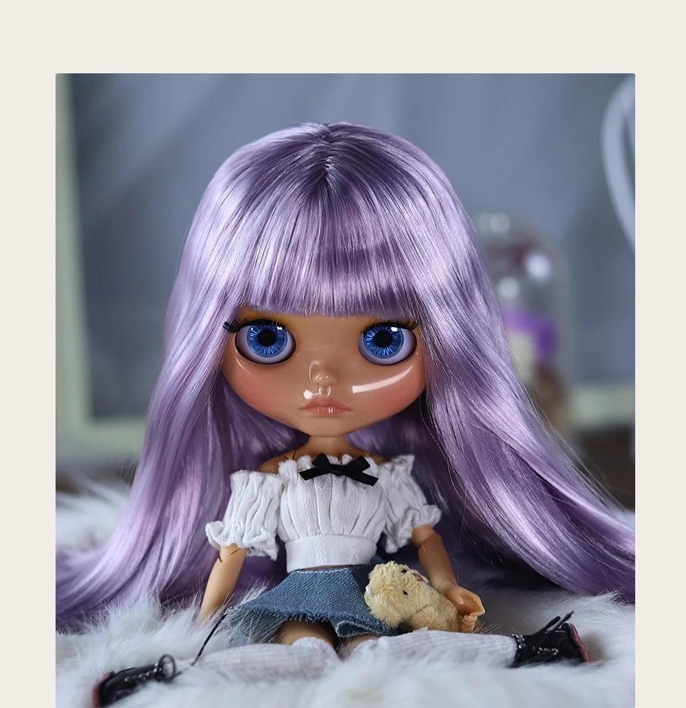Emi – Premium Custom Neo Blythe Doll with Purple Hair, Tan Skin & Shiny Cute Face