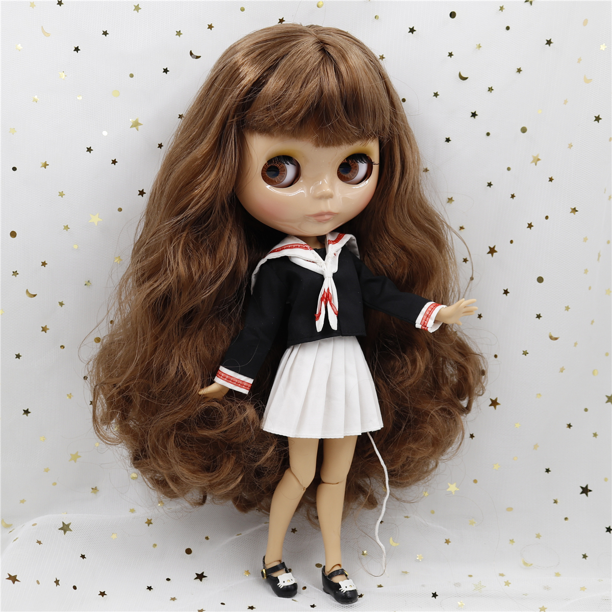 Estrella – Premium Custom Neo Blythe Doll with Brown Hair, Tan Skin & Shiny Cute Face