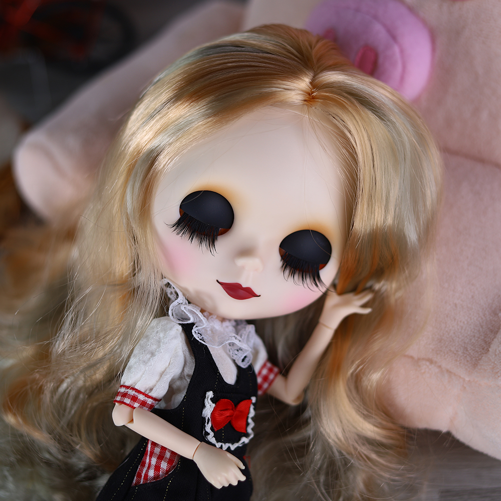 Looking for your own wide-eyed darling? Here is your top-quality handmade custom Neo Blythe Doll for sale. Evie – Premium Custom Blythe Doll with Cute Face is what you have been looking for, for a long time. Adopt your dream custom handmade Neo Blythe doll now – fully assembled and ready out of the box! All parts are brand new with quality craftsmanship, improved silky soft hair, top quality sturdy body, new Blythe face, 4 eye colors, and additional free items with purchase. Ideal for Blythe doll customizers, collectors and gift purposes. Buy a gift of Blythe now!