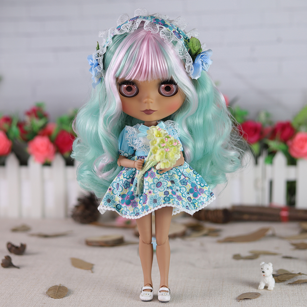 Felicity – Premium Custom Neo Blythe Doll with Multi-Color Hair, Dark Skin & Matte Cute Face