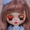 Neo Blythe Doll models come with four different eye colors and positions. Blythe has a large head to incorporate the eye-change mechanism, which is controlled by a pull cord running from the back of the head that all work without the help of batteries. Blythe’s eyes are large and round, and they change from a variety of colors such as green, pink, yellow, blue, brown, and gray each time the string is pulled, momentarily closing between each cord pull. Although each Blythe doll comes with four sets of eyechips already installed, you can always customize Blythe eyechips to your liking from galaxy design to hearts to human-like eyes. In addition to traditional eye dolls, some of the new generation custom Blythe dolls have sleepy eyes integrated, which a second cord allows changing the gaze into the sleepy position.
