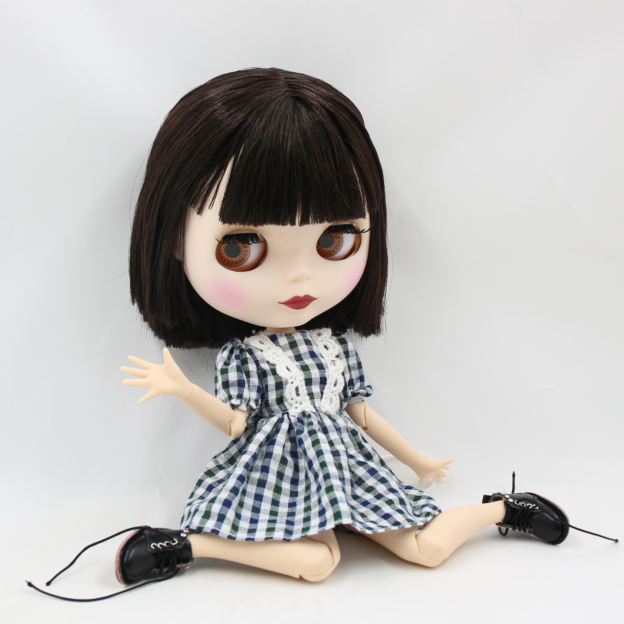 Kate – Premium Custom Blythe Doll with Cute Face Brown Hair Custom Blythe Doll Matte Face Custom Blythe Doll White Skin Custom Blythe Doll