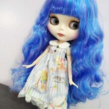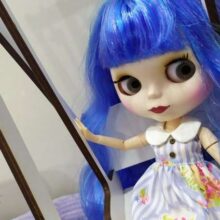 Neo Blythe Doll models come with four different eye colors and positions. Blythe has a large head to incorporate the eye-change mechanism, which is controlled by a pull cord running from the back of the head that all work without the help of batteries. Blythe’s eyes are large and round, and they change from a variety of colors such as green, pink, yellow, blue, brown, and gray each time the string is pulled, momentarily closing between each cord pull. Although each Blythe doll comes with four sets of eyechips already installed, you can always customize Blythe eyechips to your liking from galaxy design to hearts to human-like eyes. In addition to traditional eye dolls, some of the new generation custom Blythe dolls have sleepy eyes integrated, which a second cord allows changing the gaze into the sleepy position.