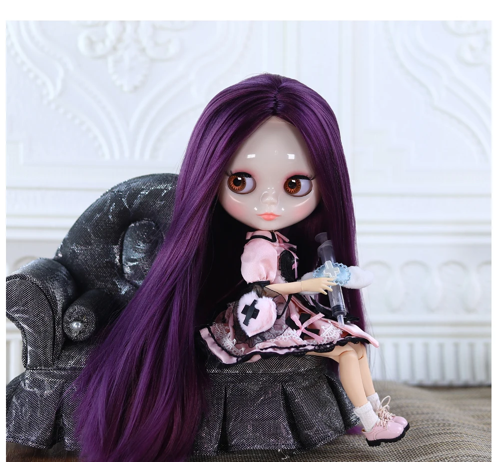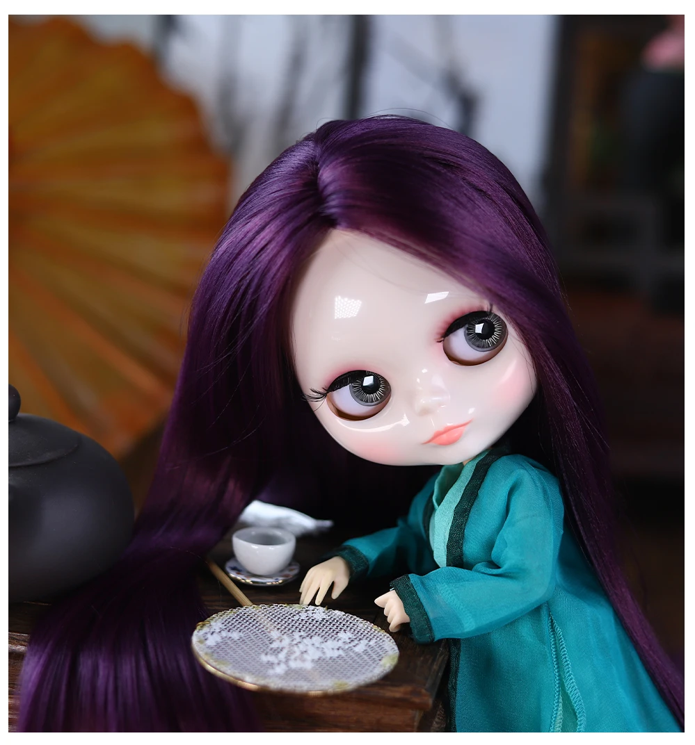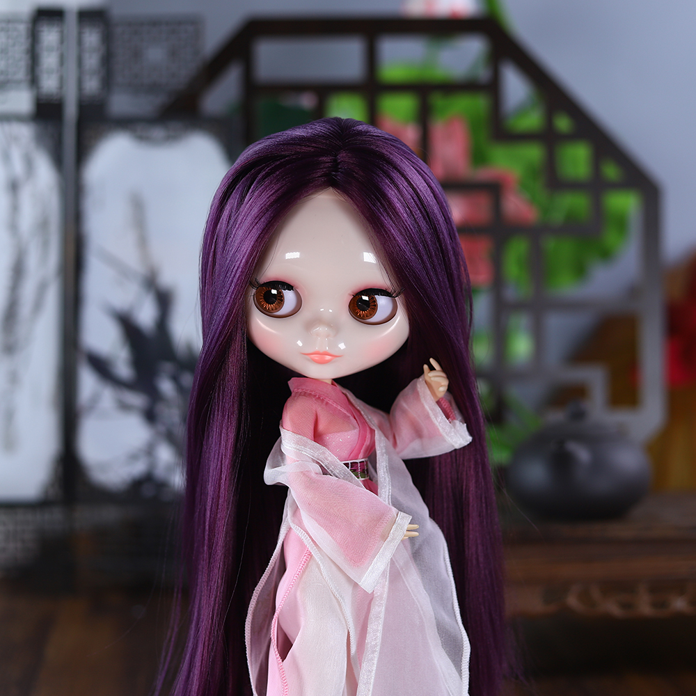 Lucinda – Premium Custom Neo Blythe Doll with Purple Hair, White Skin & Shiny Cute Face