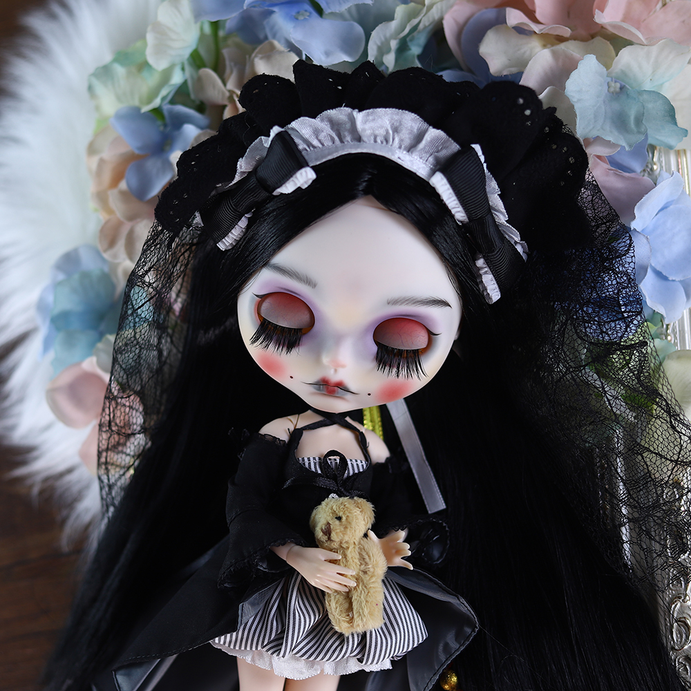 Mary – Premium Custom Neo Blythe Doll with Black Hair, White Skin & Matte Cute Face