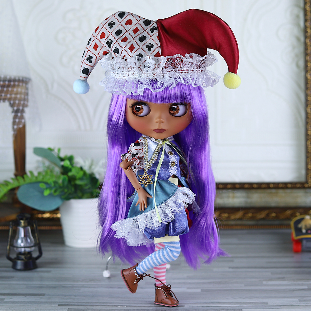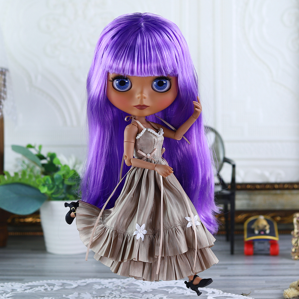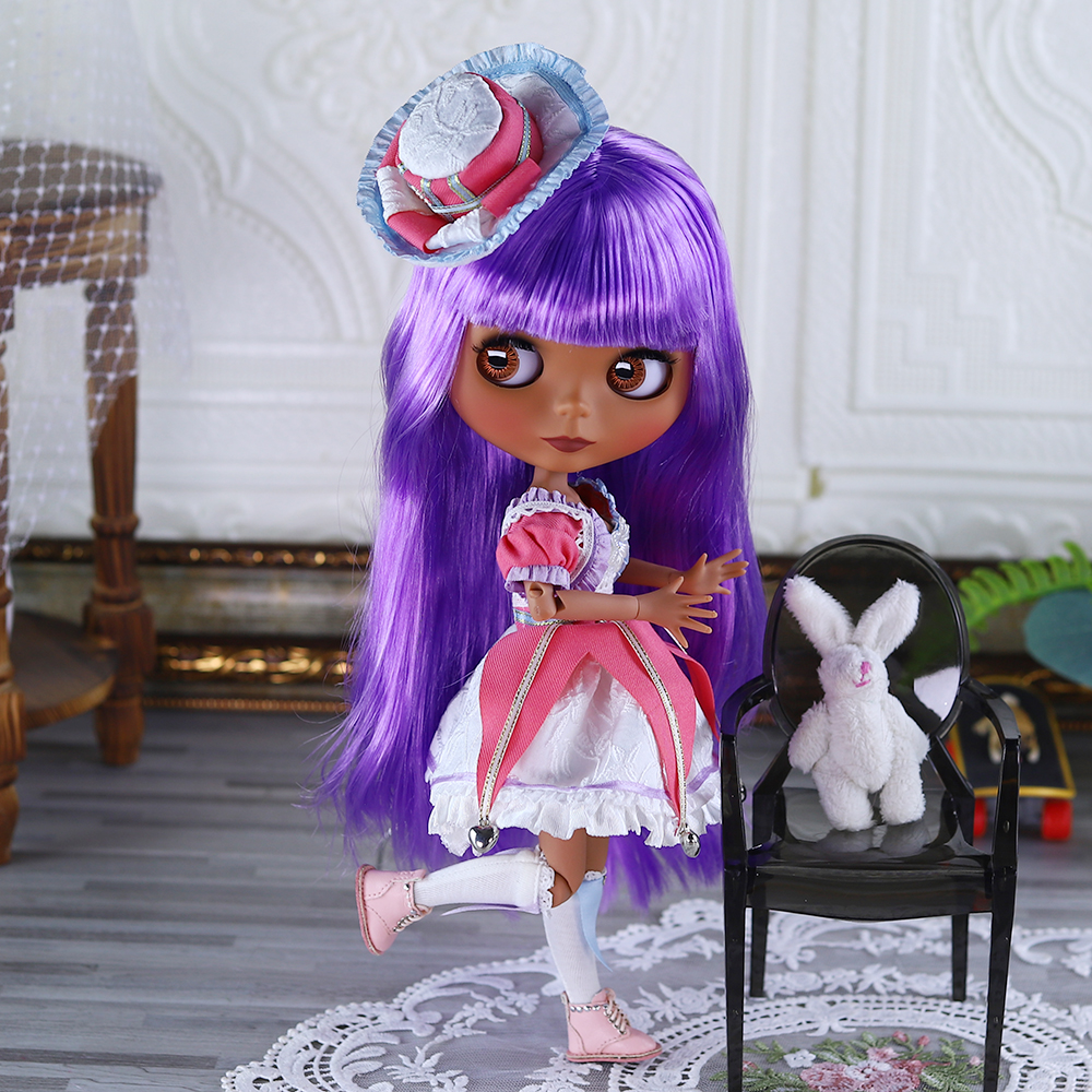 Naomi – Premium Custom Neo Blythe Doll with Purple Hair, Dark Skin & Matte Cute Face