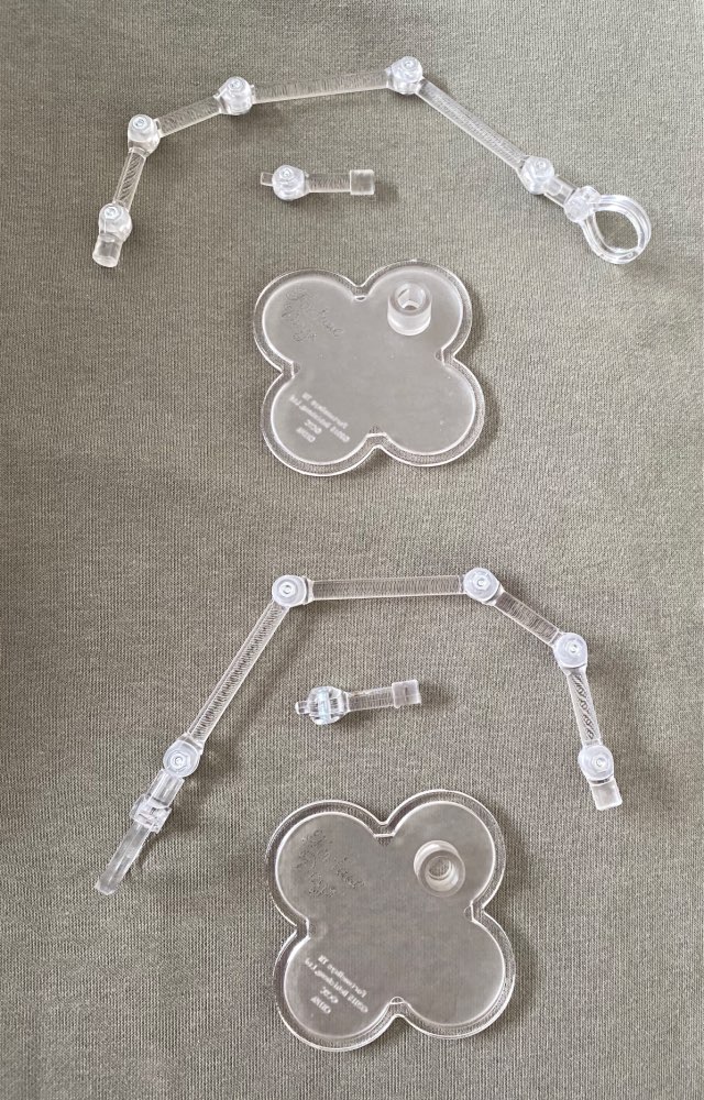 As pictured and described. Arrived in 6 days to the UK! The stands seem sturdy and holds well once you’ve figured out how to pose the doll etc. Happy with purchase and would buy again. Thanks to Jenna :)