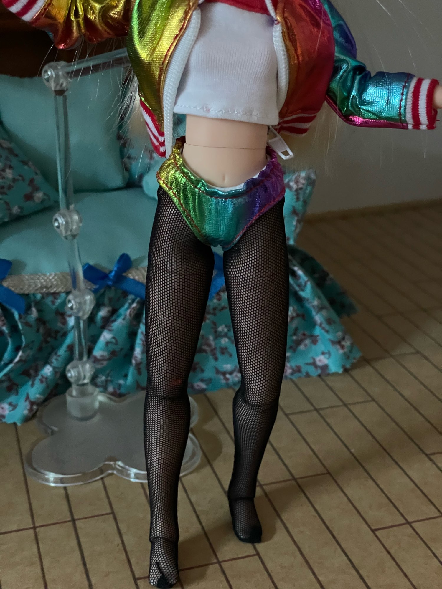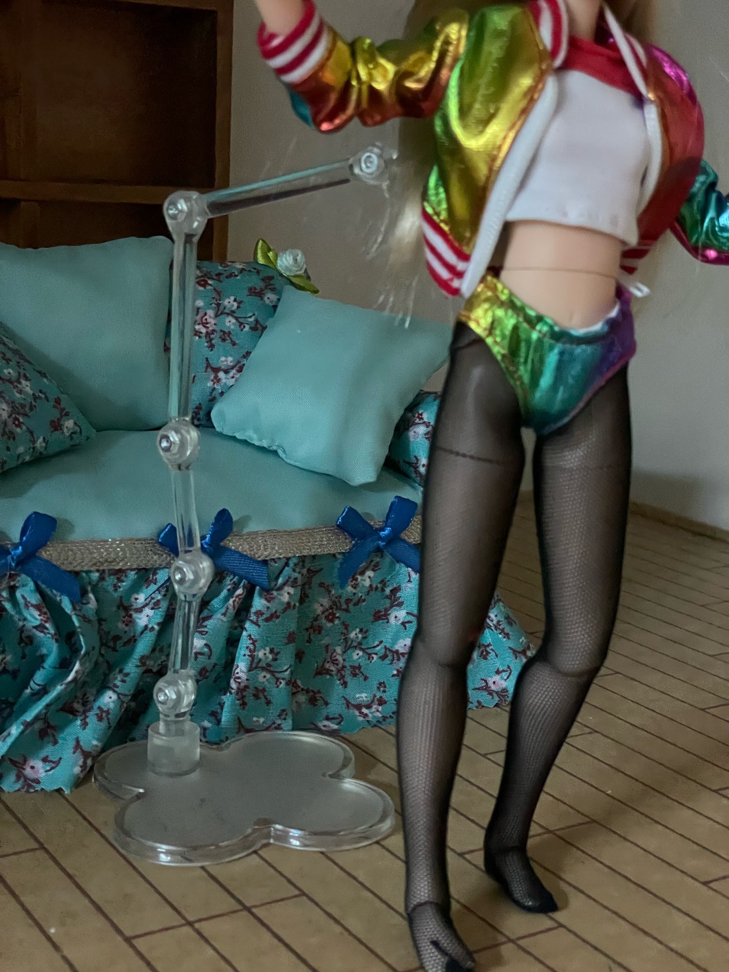 Featuring a stand for a photo shoot, I recommend it! It is installed remotely from the doll, merges with the background, and does not spoil the frame. The balance for the photo is possible and on one leg. Sent and delivered quickly. Doll with a photo from the same store