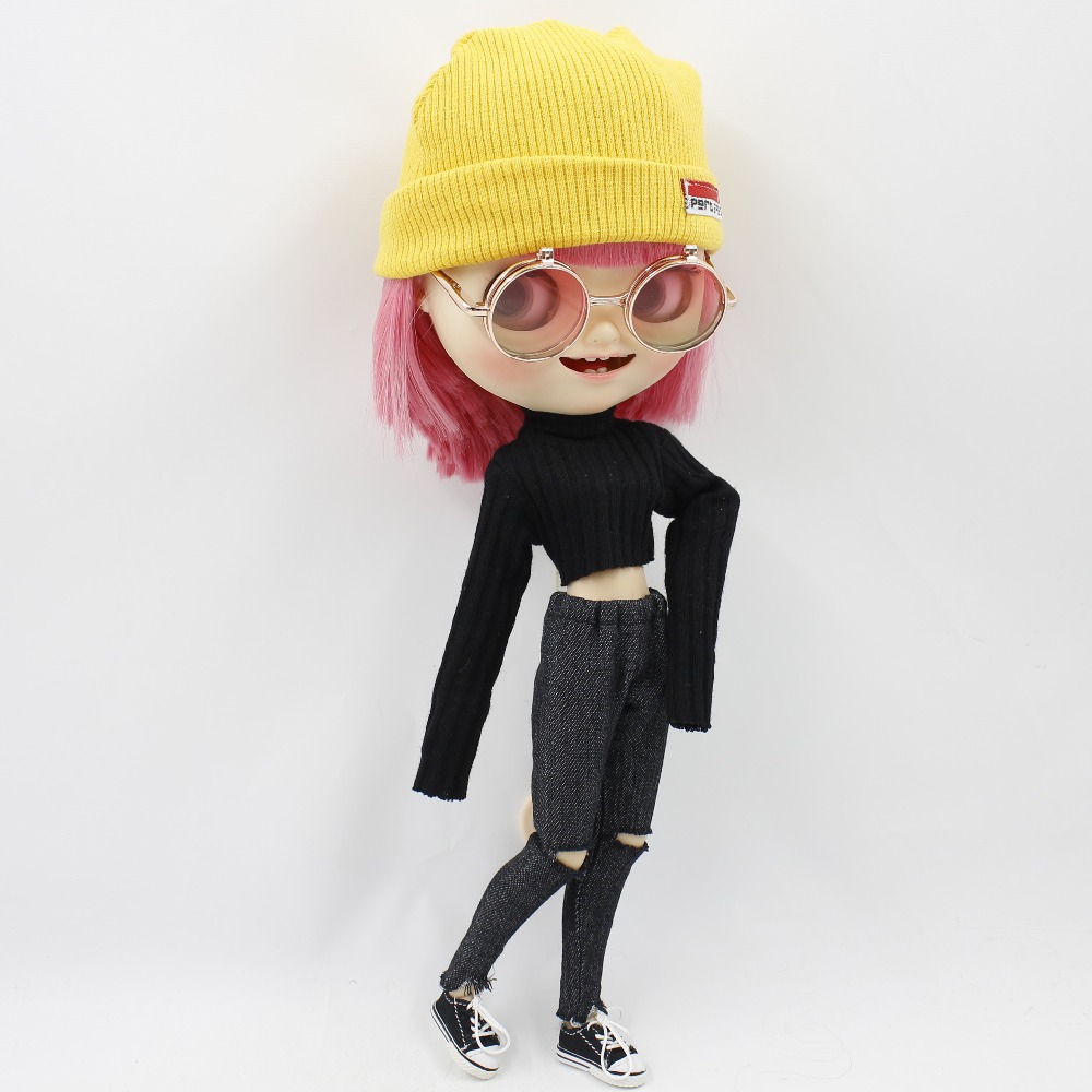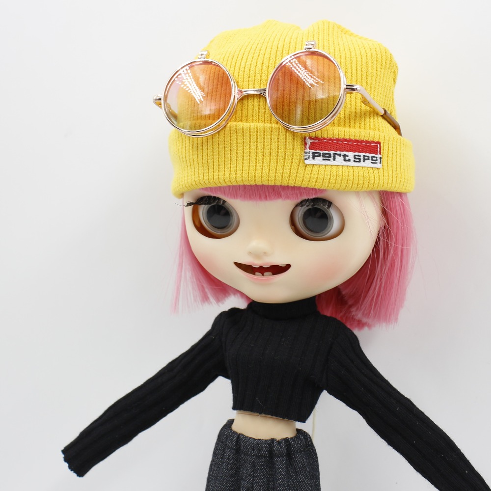 Neo Blythe Doll models come with four different eye colors and positions. Blythe has a large head to incorporate the eye-change mechanism, which is controlled by a pull cord running from the back of the head that all work without the help of batteries. Blythe’s eyes are large and round, and they change from a variety of colors such as green, pink, yellow, blue, brown, and gray each time the string is pulled, momentarily closing between each cord pull. Although each Blythe doll comes with four sets of eyechips already installed, you can always customize Blythe eyechips to your liking from galaxy design to hearts to human-like eyes. In addition to traditional eye dolls, some of the new generation custom Blythe dolls have sleepy eyes integrated, which a second cord allows changing the gaze into the sleepy position.