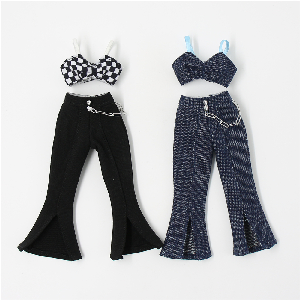 Neo Blythe Doll Cropped Top Shirt Bra with Bell Bottom Pant & Leopard Hat Blythe doll clothes