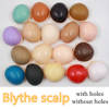Neo Blythe Doll models come with four different eye colors and positions. Blythe has a large head to incorporate the eye-change mechanism, which is controlled by a pull cord running from the back of the head that all work without the help of batteries. Blythe’s eyes are large and round, and they change from a variety of colors such as green, pink, yellow, blue, brown, and gray each time the string is pulled, momentarily closing between each cord pull. Although each Blythe doll comes with four sets of eyechips already installed, you can always customize Blythe eyechips to your liking from galaxy design to hearts to human-like eyes. In addition to traditional eye dolls, some of the new generation custom Blythe dolls have sleepy eyes integrated, which a second cord allows changing the gaze into the sleepy position.