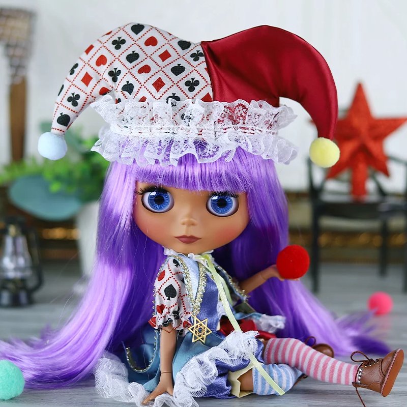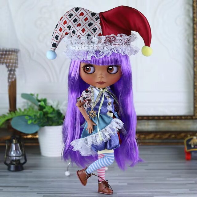 Crafted with meticulous attention to detail, this Neo Blythe Doll Halloween Clown Dress with Cap and Striped Stockings is designed to make your doll a standout character during the spooky season. Whether displayed at a Halloween gathering or incorporated into seasonal play, this ensemble is sure to bring joy and a touch of whimsy to your Blythe doll collection.