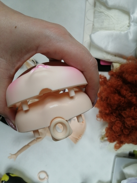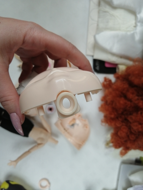 The detail is rubber, more than the hole in the head of the Blythe, but if you cut it, then everything is dressed well and the head keeps perfectly.