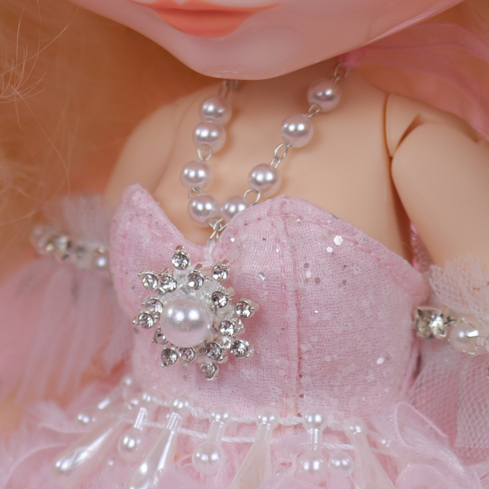 This princess dress is a perfect way to dress up your Neo Blythe doll for special occasions. The soft pink fabric is adorned with delicate feathers and pearls, creating a truly elegant look. The matching crown adds a touch of royalty, making your doll the belle of the ball.