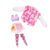 • The dress is made of a soft, pink fabric with a strawberry print.