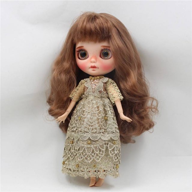 Neo Blythe Doll Vintage Golden Lace Dress