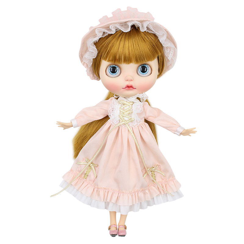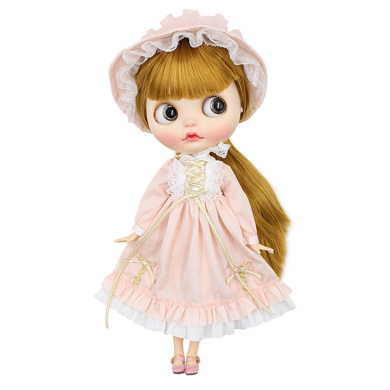 The Neo Blythe Doll Vintage Pink Lace Dress With Hat is an exquisite ensemble that captures the essence of classic elegance and the whimsical charm of bygone eras. This outfit is crafted with attention to detail and designed to complement the distinctive aesthetic of the Blythe doll. Here are the features and qualities of this beautiful dress set: