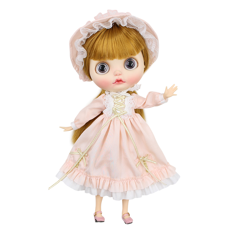 Neo Blythe Doll Vintage Pink Lace Dress With Hat