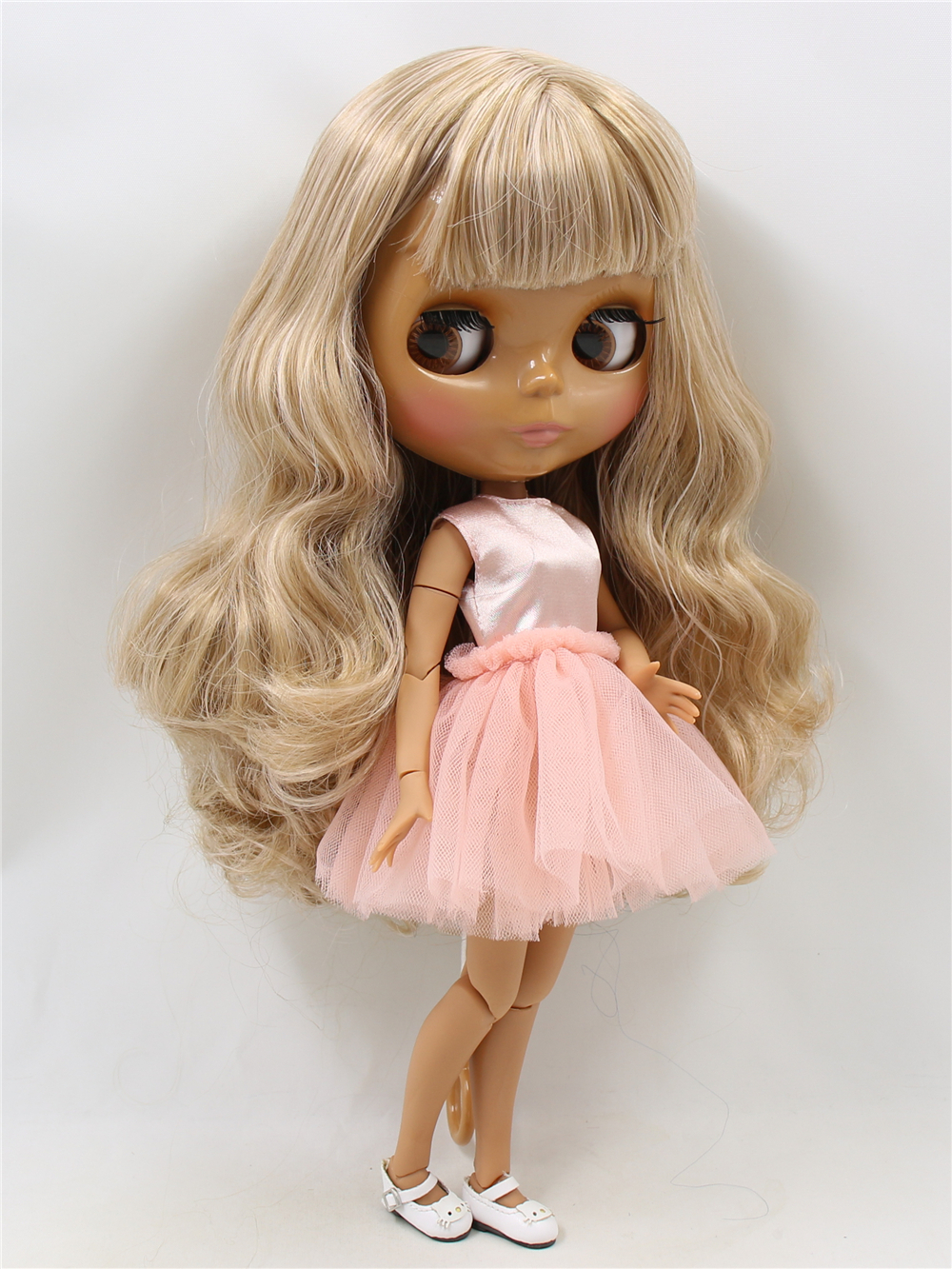 Neo Blythe Doll with Blonde Hair, Dark Skin, Shiny Face & Jointed Body Blonde Hair Factory Blythe Doll Dark Skin Factory Blythe Doll Shiny Face Factory Blythe Doll