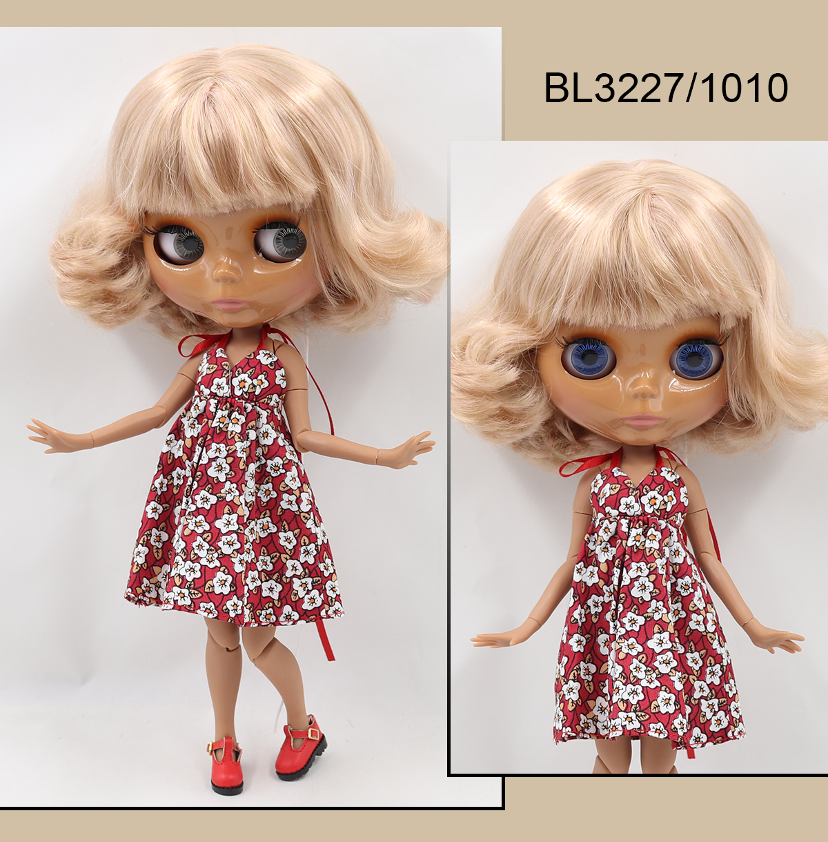 Neo Blythe Doll with Blonde Hair, Dark Skin, Shiny Face & Jointed Body Blonde Hair Factory Blythe Doll Dark Skin Factory Blythe Doll Shiny Face Factory Blythe Doll