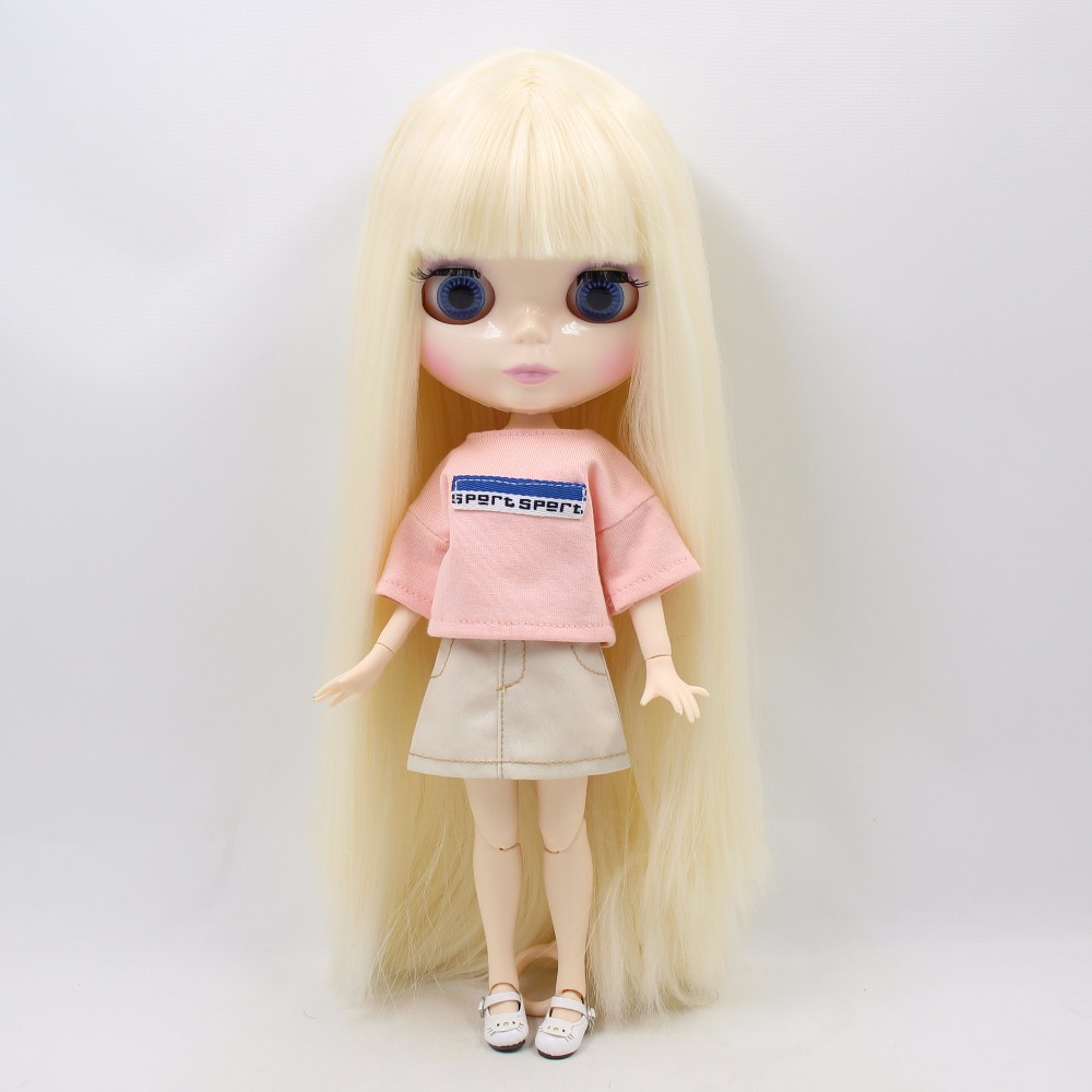 Neo Blythe Doll with Blonde Hair, White Skin, Shiny Face & Jointed Body Blonde Hair Factory Blythe Doll Shiny Face Factory Blythe Doll White Skin Factory Blythe Doll