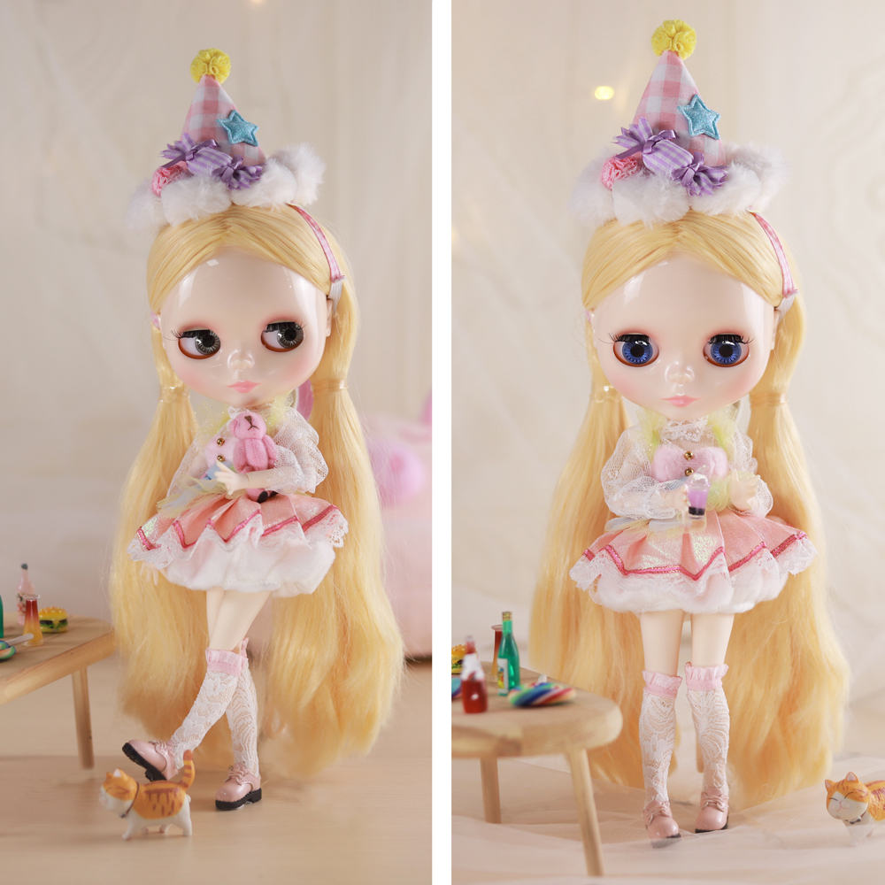 Visually stunning artisan-made Neo Blythe Dolls are full of character and cuteness. Customized fashionable clothes & shoes, which you can now buy separately, give them even more individuality and a distinct look. Get your own Blythes and put their style on a show! These 12-inch customizable factory dolls are the perfect gift and sought by doll customizers and collectors around the world. They have amazing looks, beautiful eyes in four different colors, and silky soft hair.