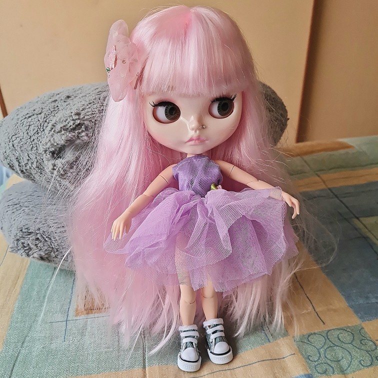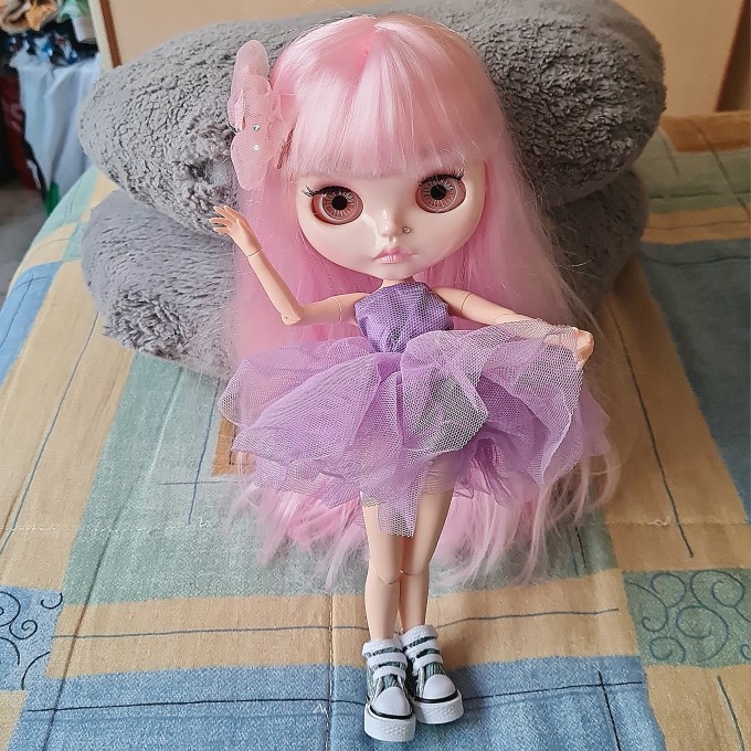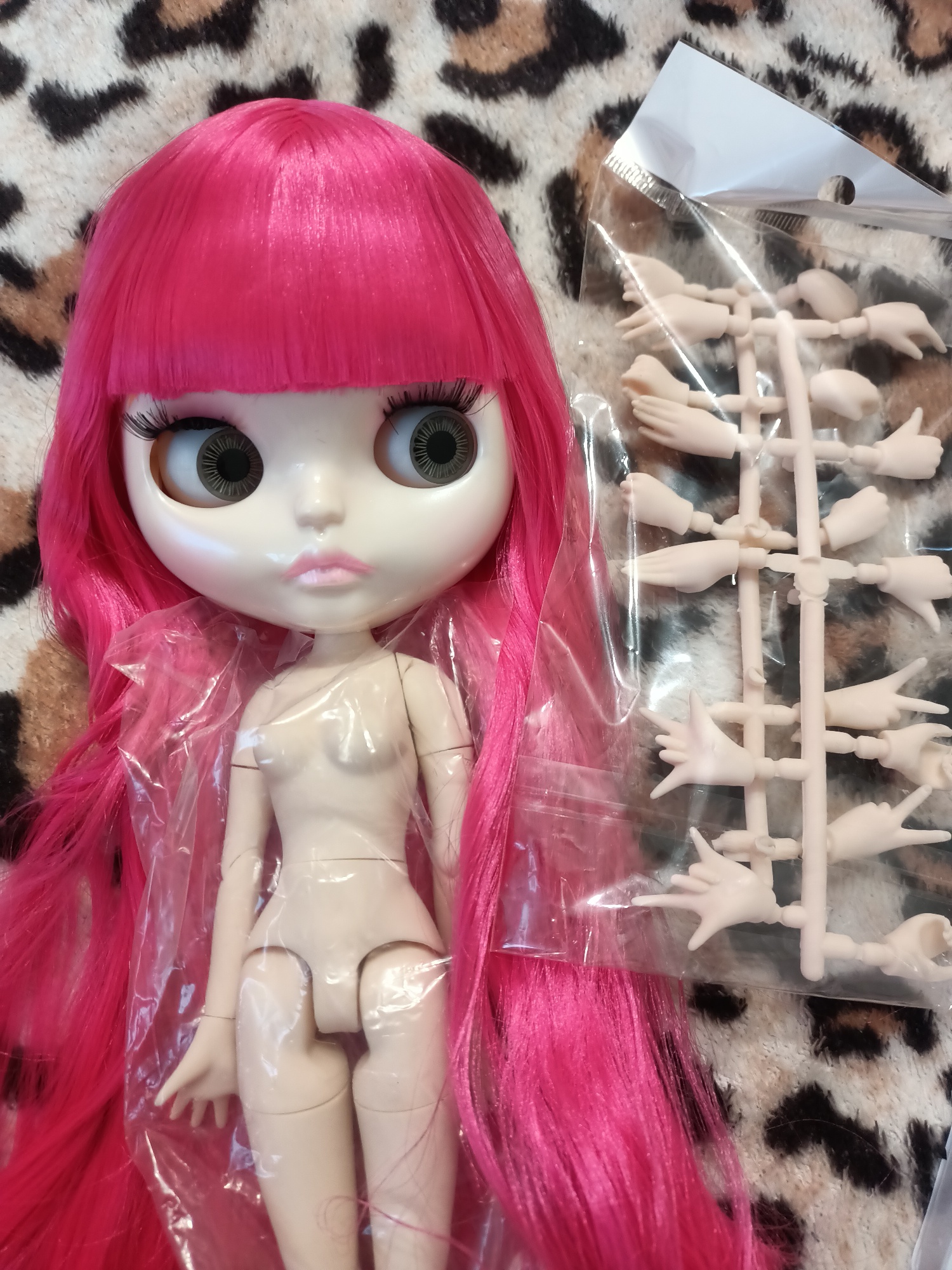 It's an articulated 30 cm doll. It has 4 Eye color changes. Bright-faced, she has pink hair, long and abundant. It's very pretty. She came naked. I bought it for sale. Great price quality. Well packed. The order could be tracked, which was combined and arrived fast. Delivered at pickup point. I recommend the doll and store (although I don't send any gifts, I buy blythe and before the sellers sent gifts, e.g. a dress and/or shoes. I 'd appreciate it if you 'd send them back!)