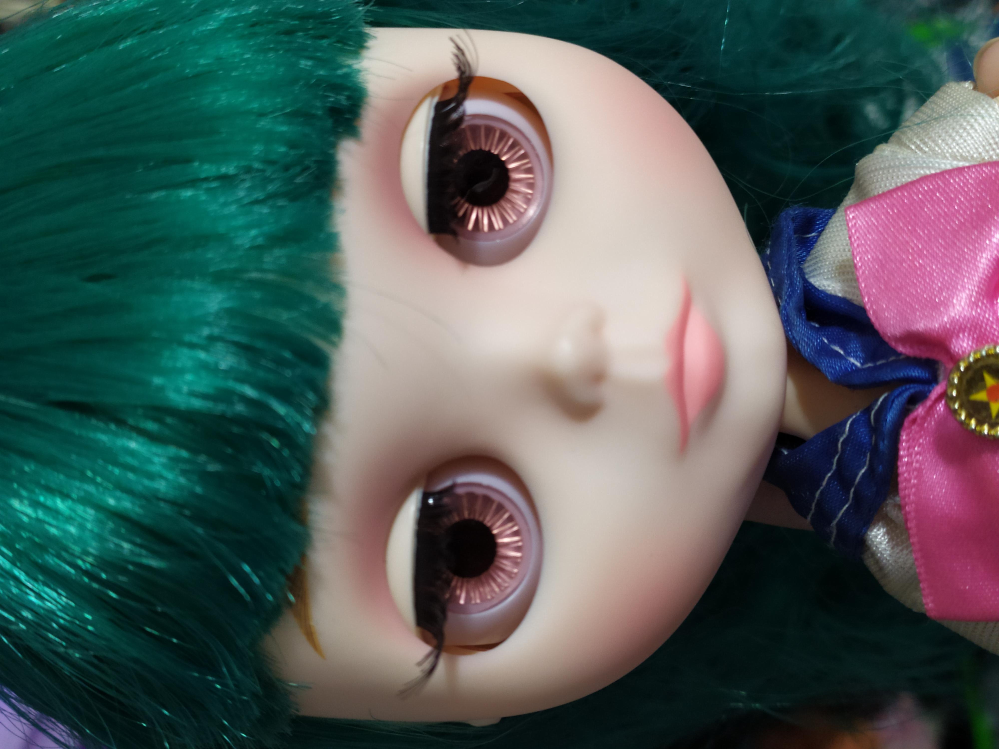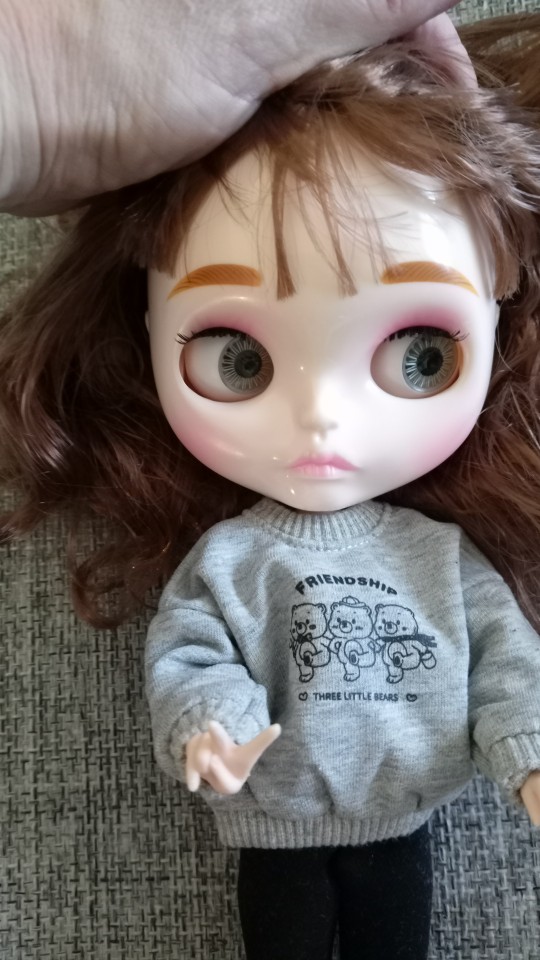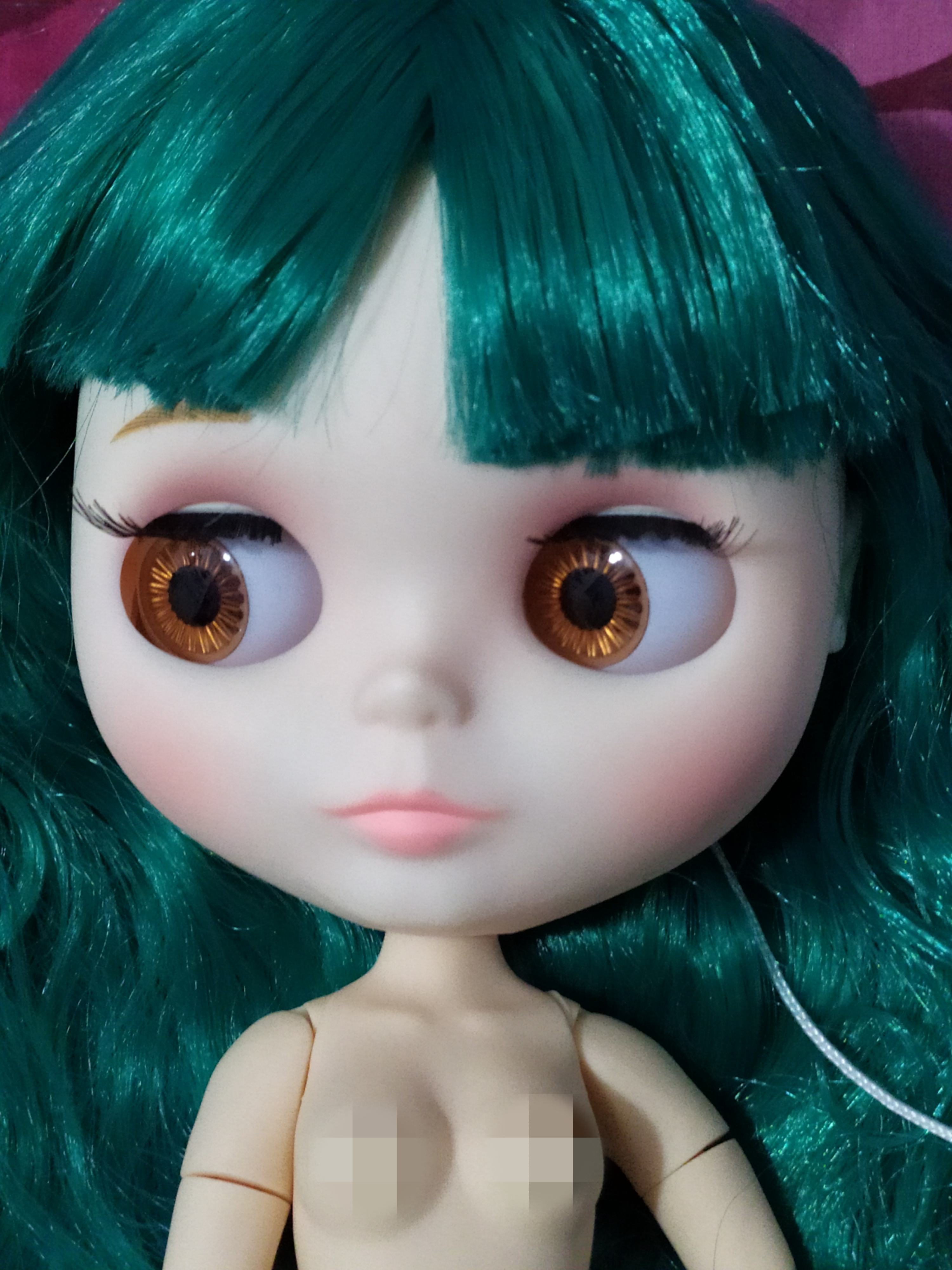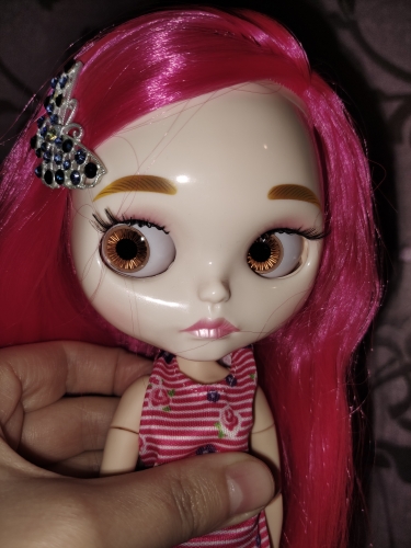The doll is very beautiful. The color of the body and head is different, but the store indicates this in the description. Hair color is bright. And most importantly, her eyebrows are drawn, not everyone has such a Blythe