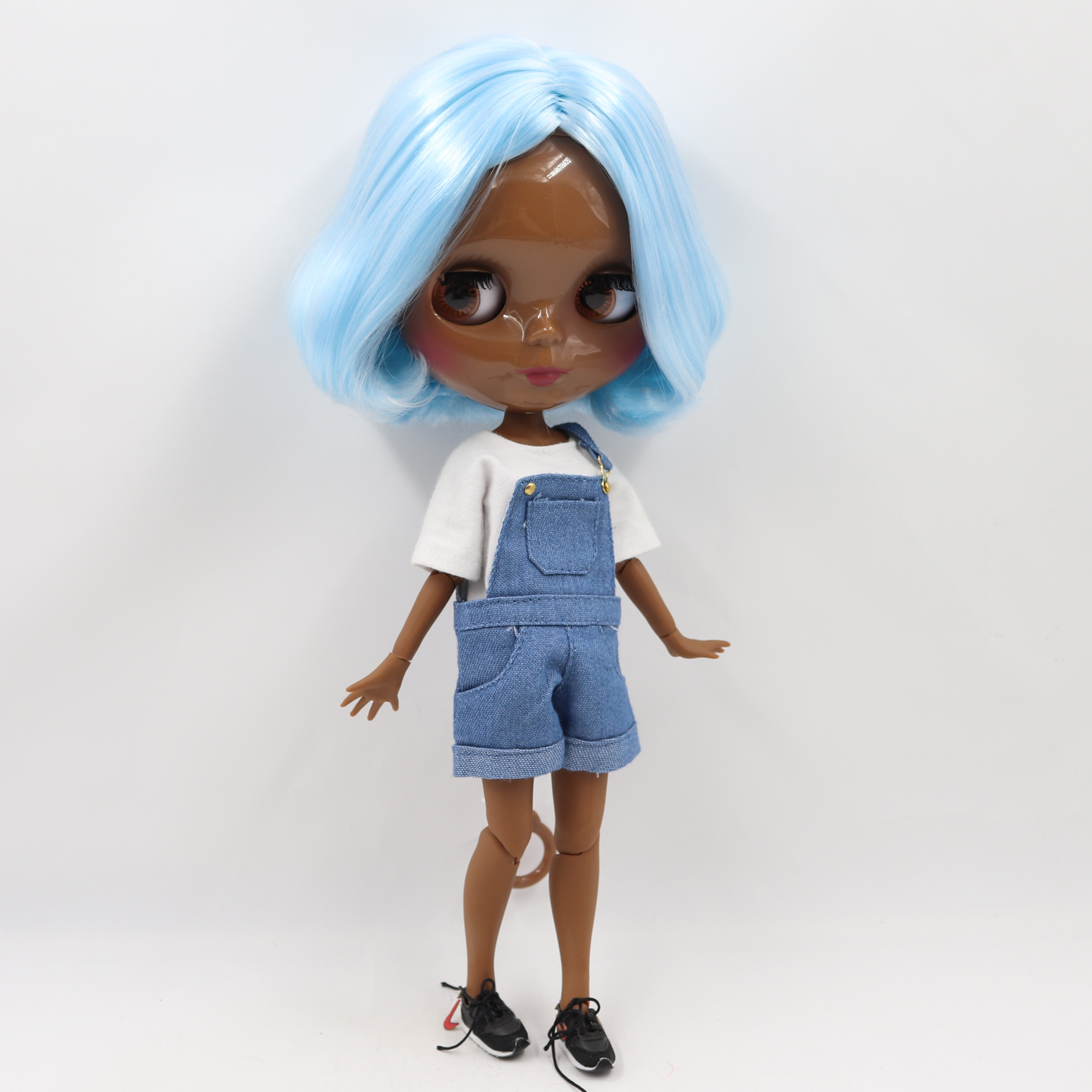 Neo Blythe Doll with Blue Hair, Black skin, Shiny Face & Jointed Body Black Skin Factory Blythe Doll Blue Hair Factory Blythe Doll Shiny Face Factory Blythe Doll