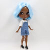 Neo Blythe Doll with Blue Hair, Black Skin, Shiny Cute Face & Custom Jointed Body