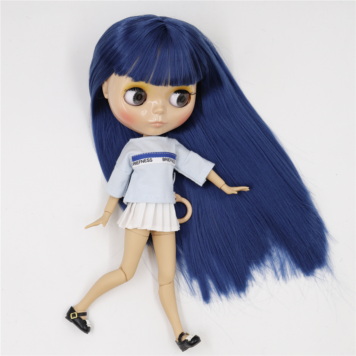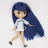 Neo Blythe Doll with Blue Hair, Tan Skin, Shiny Face & Jointed Body Blue Hair Factory Blythe Doll Shiny Face Factory Blythe Doll Tan Skin Factory Blythe Doll