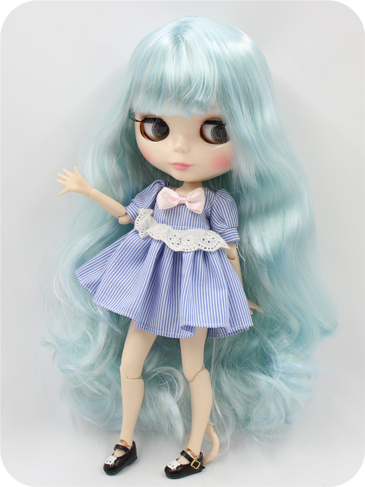 Neo Blythe Doll with Blue Hair, White Skin, Shiny Cute Face & Custom Jointed Body 1Neo Blythe Doll with Blue Hair, White Skin, Shiny Cute Face & Custom Jointed Body 2