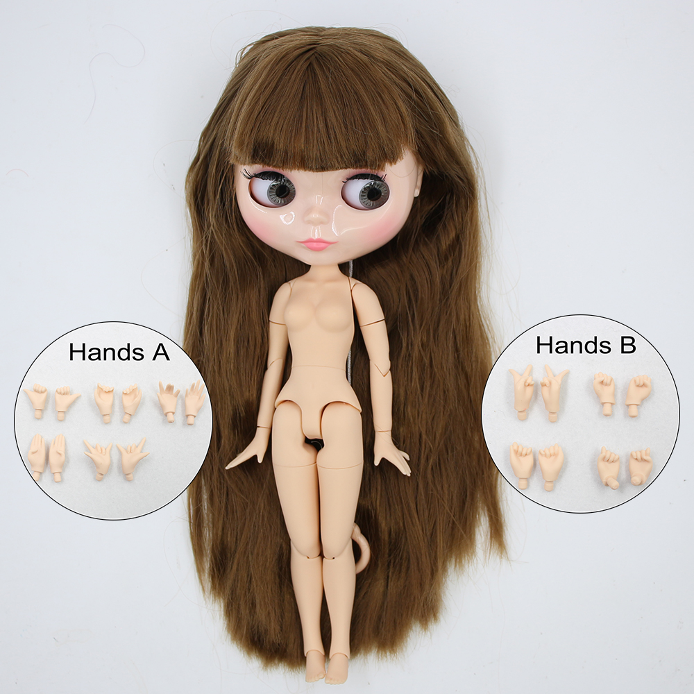 Neo Blythe Doll with Brown Hair, Natural Skin, Shiny Cute Face & Custom Jointed Body