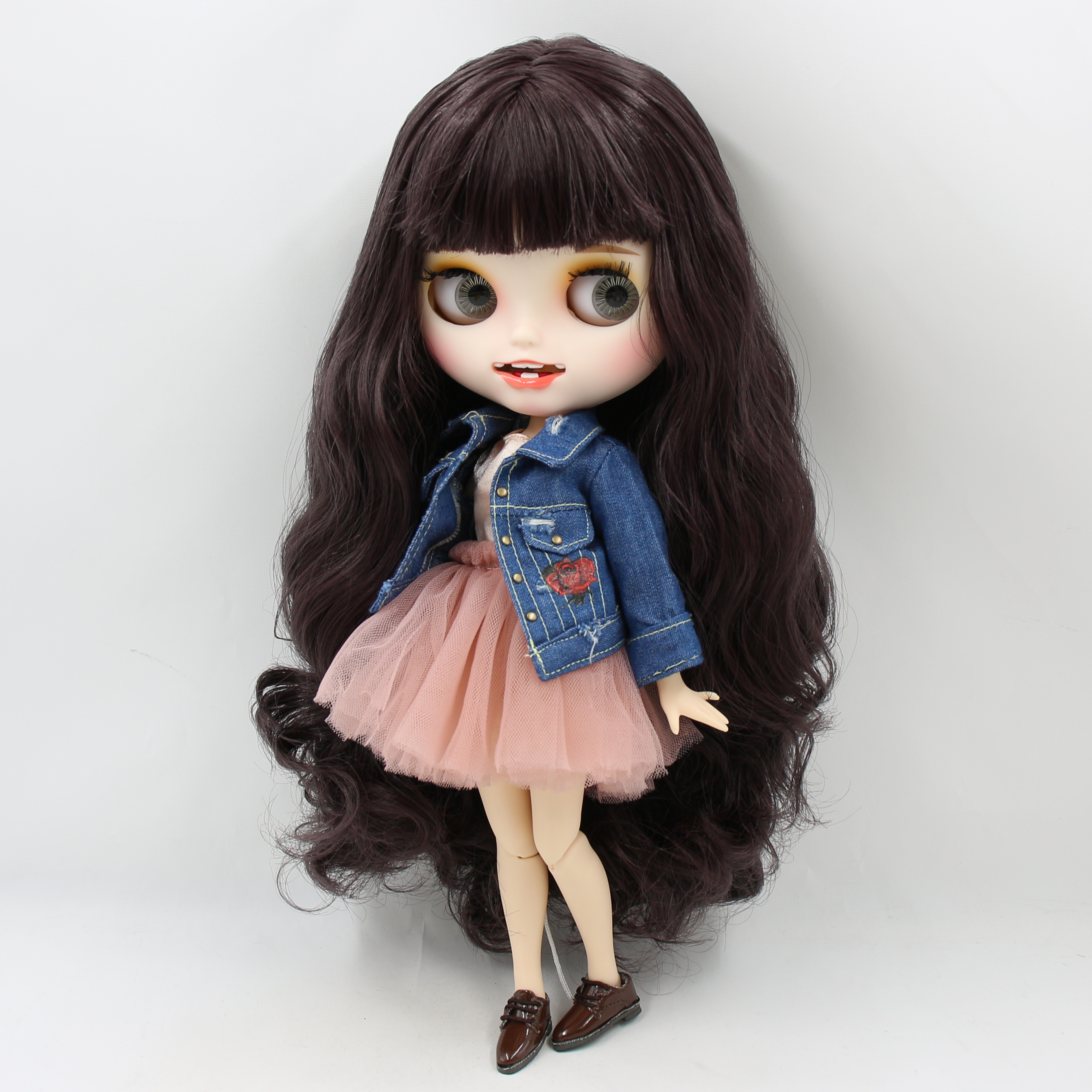 Neo Blythe Doll with Brown Hair, White Skin, Matte Face & Jointed Body Brown Hair Factory Blythe Doll Matte Face Factory Blythe Doll White Skin Factory Blythe Doll