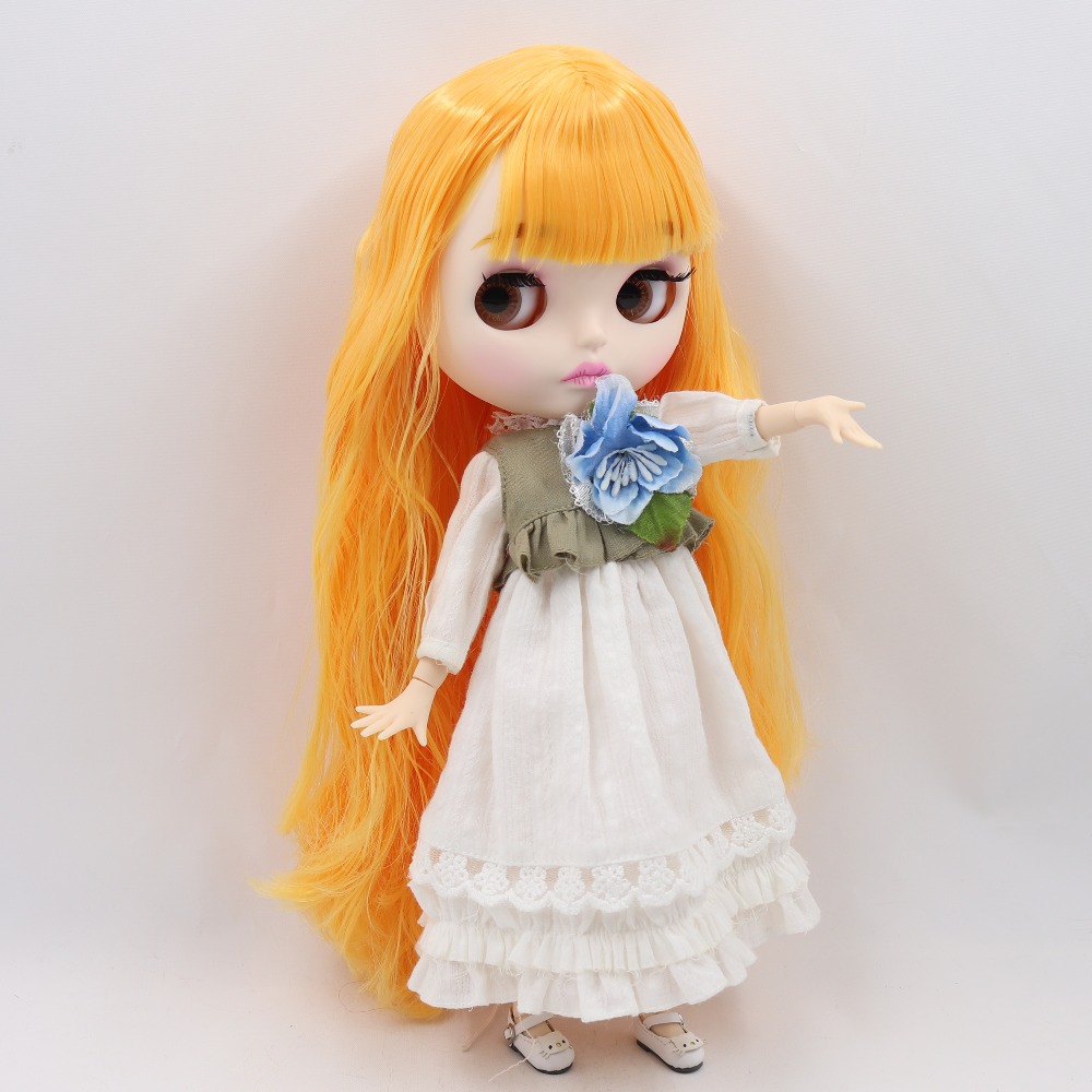 Neo Blythe Doll with Orange Hair, White Skin, Matte Face & Jointed Body Orange Hair Factory Blythe Doll