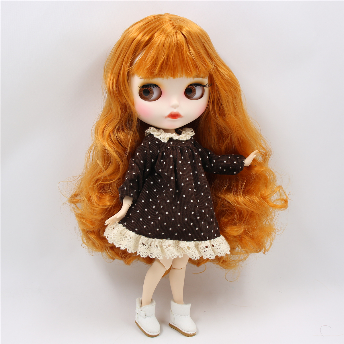 Neo Blythe Doll with Ginger Hair, White Skin, Matte Pouty Face & Custom Jointed Body