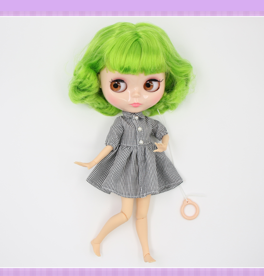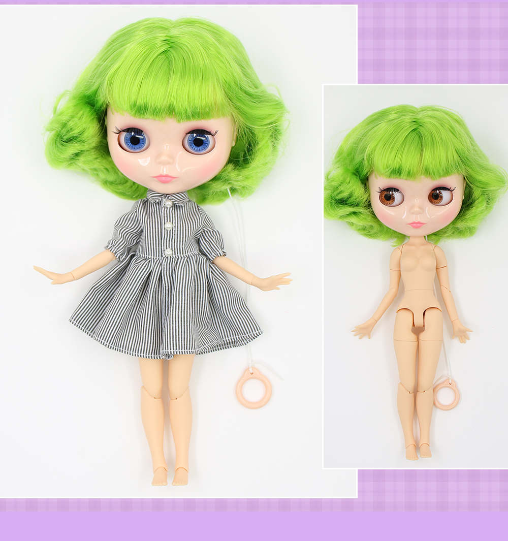 Neo Blythe Doll with Green Hair, Natural Skin, Shiny Cute Face & Custom Jointed Body Cute face Green hair Natural skin Shiny face