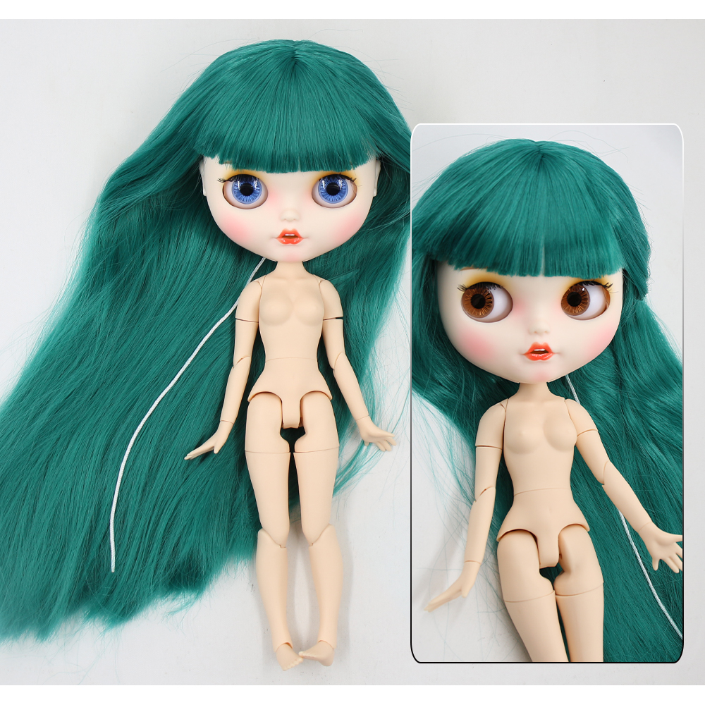 Neo Blythe Doll with Green Hair, White Skin, Matte Smiling Face & Custom Jointed Body: