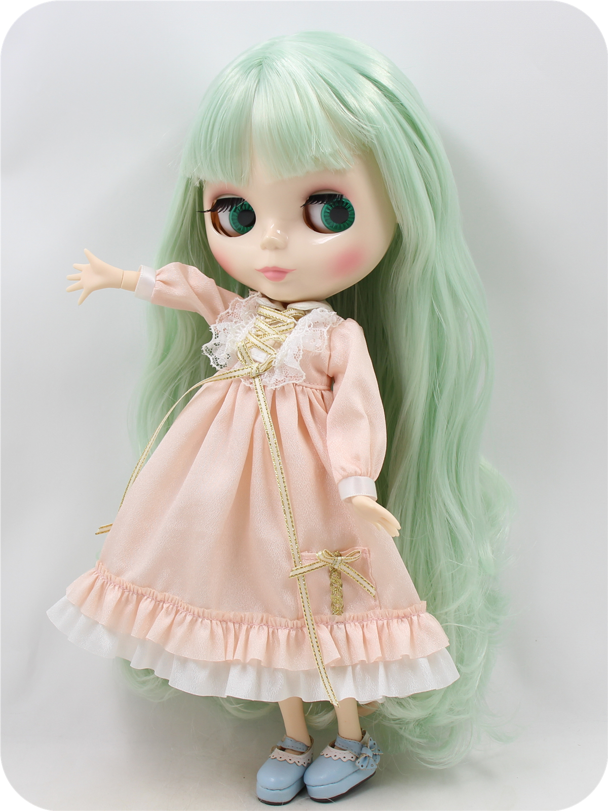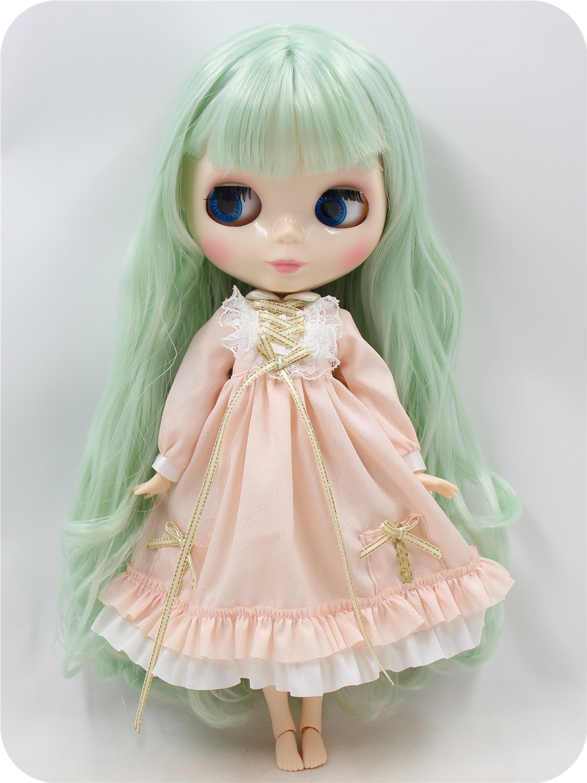 Neo Blythe Doll with Mint Hair, White Skin, Shiny Face & Jointed Body Mint Hair Factory Blythe Doll Shiny Face Factory Blythe Doll White Skin Factory Blythe Doll