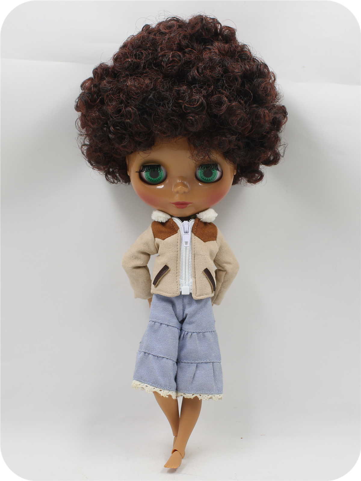 Neo Blythe Doll with Multi-Color Hair, Dark Skin, Shiny Face & Jointed Body Multi-Color Hair Factory Blythe Doll Dark Skin Factory Blythe Doll Shiny Face Factory Blythe Doll