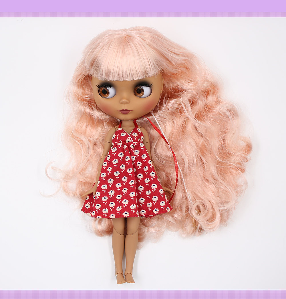 Neo Blythe Doll with Pink Hair, Dark Skin, Matte Cute Face & Custom Jointed Body: