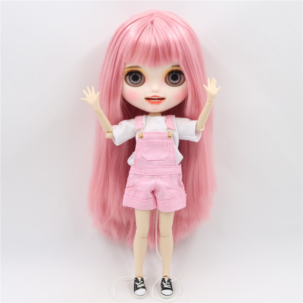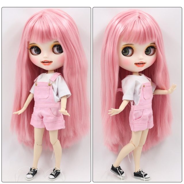 Neo Blythe Doll with Pink Hair, White Skin, Matte Face & Jointed Body Pink Hair Factory Blythe Doll Matte Face Factory Blythe Doll White Skin Factory Blythe Doll
