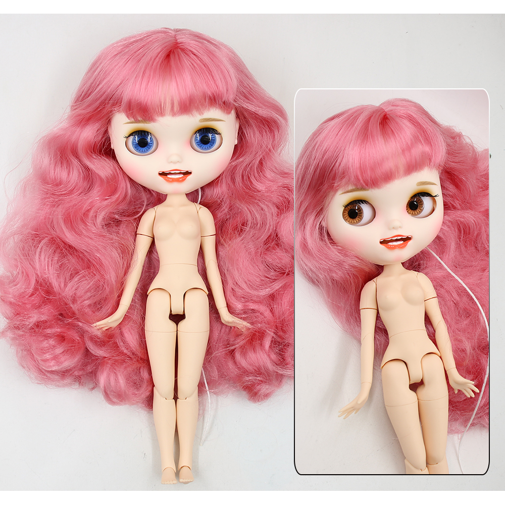Neo Blythe Doll with Pink Hair, White Skin, Matte Face & Jointed Body Pink Hair Factory Blythe Doll Matte Face Factory Blythe Doll White Skin Factory Blythe Doll