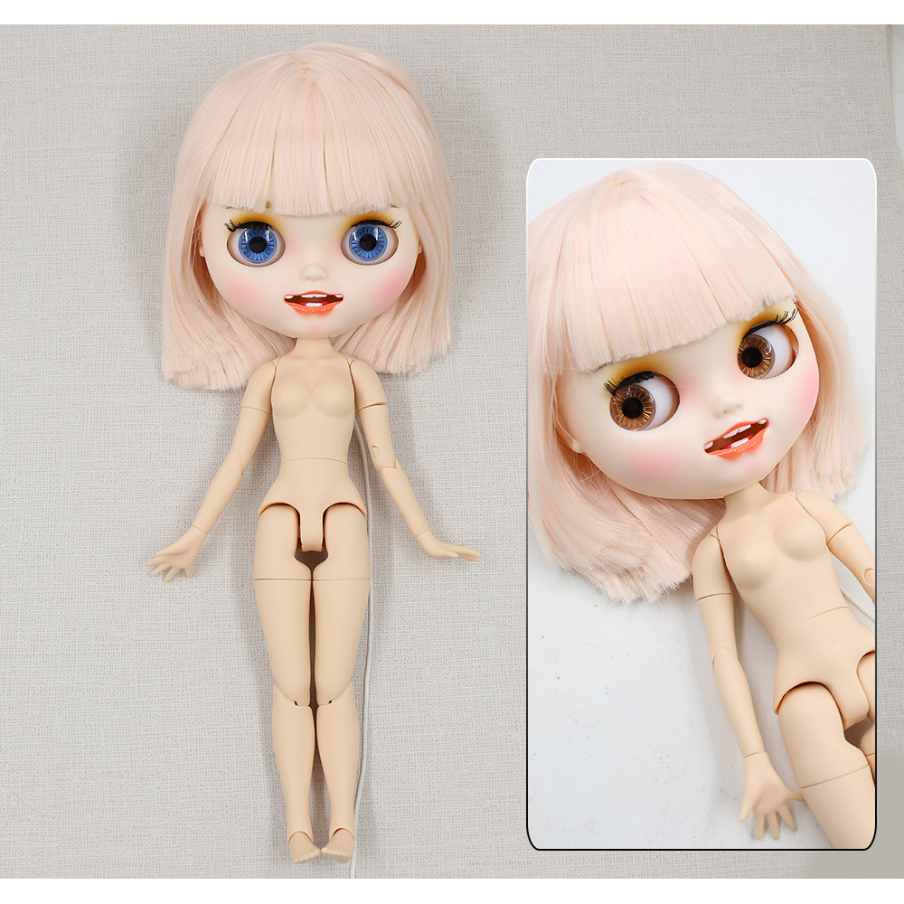 Neo Blythe Doll with Pink Hair, White Skin, Matte Face & Jointed Body Pink Hair Factory Blythe Doll Matte Face Factory Blythe Doll White Skin Factory Blythe Doll